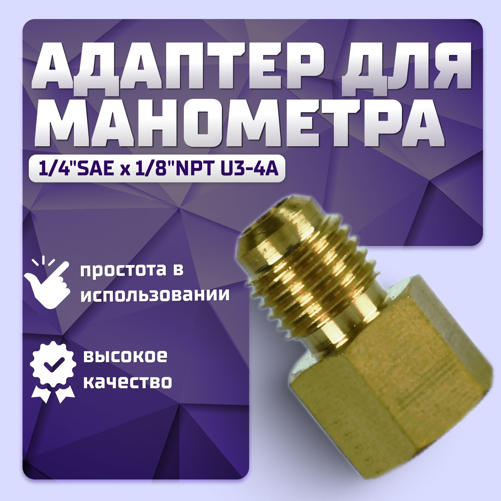 Данный резьбовой переходник NPT U3-4A является устройством, предназначенным для манометра. Этот адаптер имеет соединения 1/4SAE×1/8NPT. Переходник изготовлен из латуни.