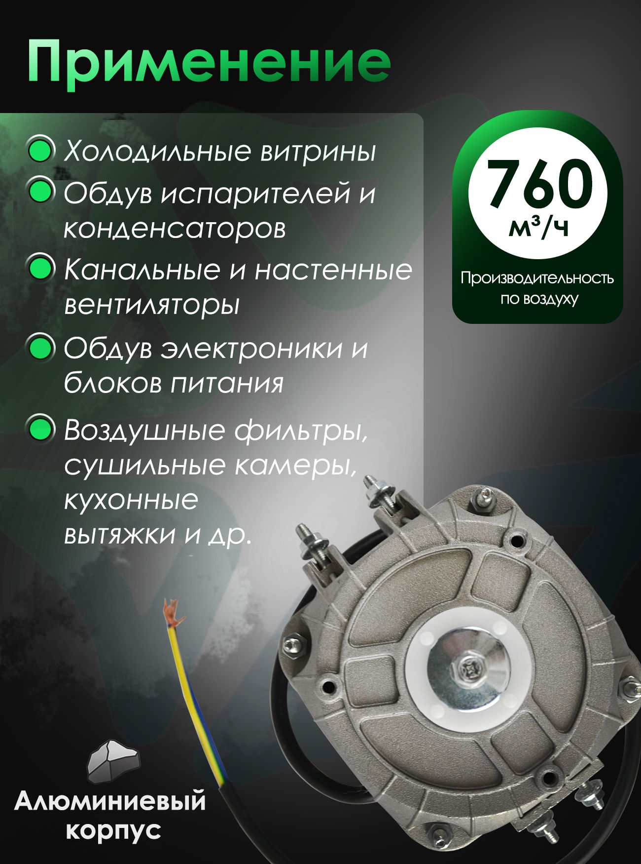 Корпус двигателя выполнен из алюминиевого сплава, который обеспечивает лёгкость конструкции, высокую теплопроводность и устойчивость к коррозии, а внутренние компоненты — статор с обмоткой из медного провода, ротор с постоянными магнитами и качественные подшипники — рассчитаны на длительную эксплуатацию без технического обслуживания.