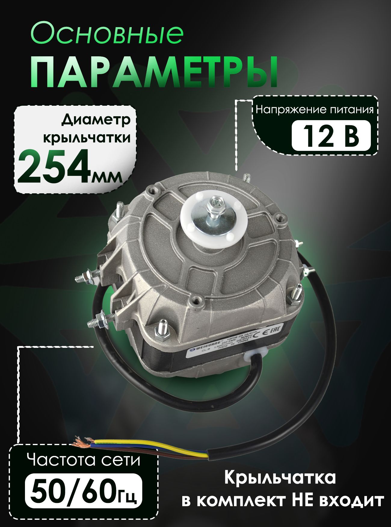 Двигатель вентилятора YZF 16-25 - это однофазный асинхронный электродвигатель с экранированными полюсами, разработанный для стабильной и длительной работы в составе вентиляционных и холодильных систем, для 4-полюсного двигателя. Он широко применяется в качестве привода вентиляторов, обеспечивающих обдув испарителей и конденсаторов в холодильных витринах, шкафах, ларях, морозильных бонетах и других устройствах, где требуется надёжный и компактный источник воздушного потока. Напряжение питания двигателя 16-25 составляет 220-240 В, 50/60 Гц, а скорость вращения - 1300 об/мин. Этот двигатель обладает выходной мощностью 16 Вт и высокой производительностью, достигающей 760 м.куб/час. Диапазон рабочих температур данного микродвигателя варьируется от -30 и до +50 °C. Запчасть поставляется БЕЗ крыльчатки, рекомендуемый диаметр которой является 254 мм.