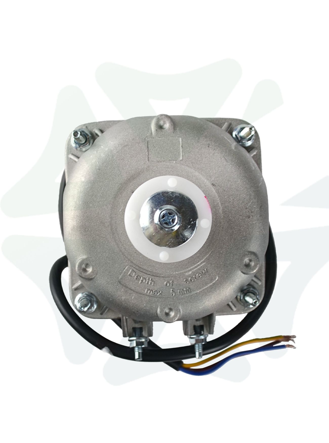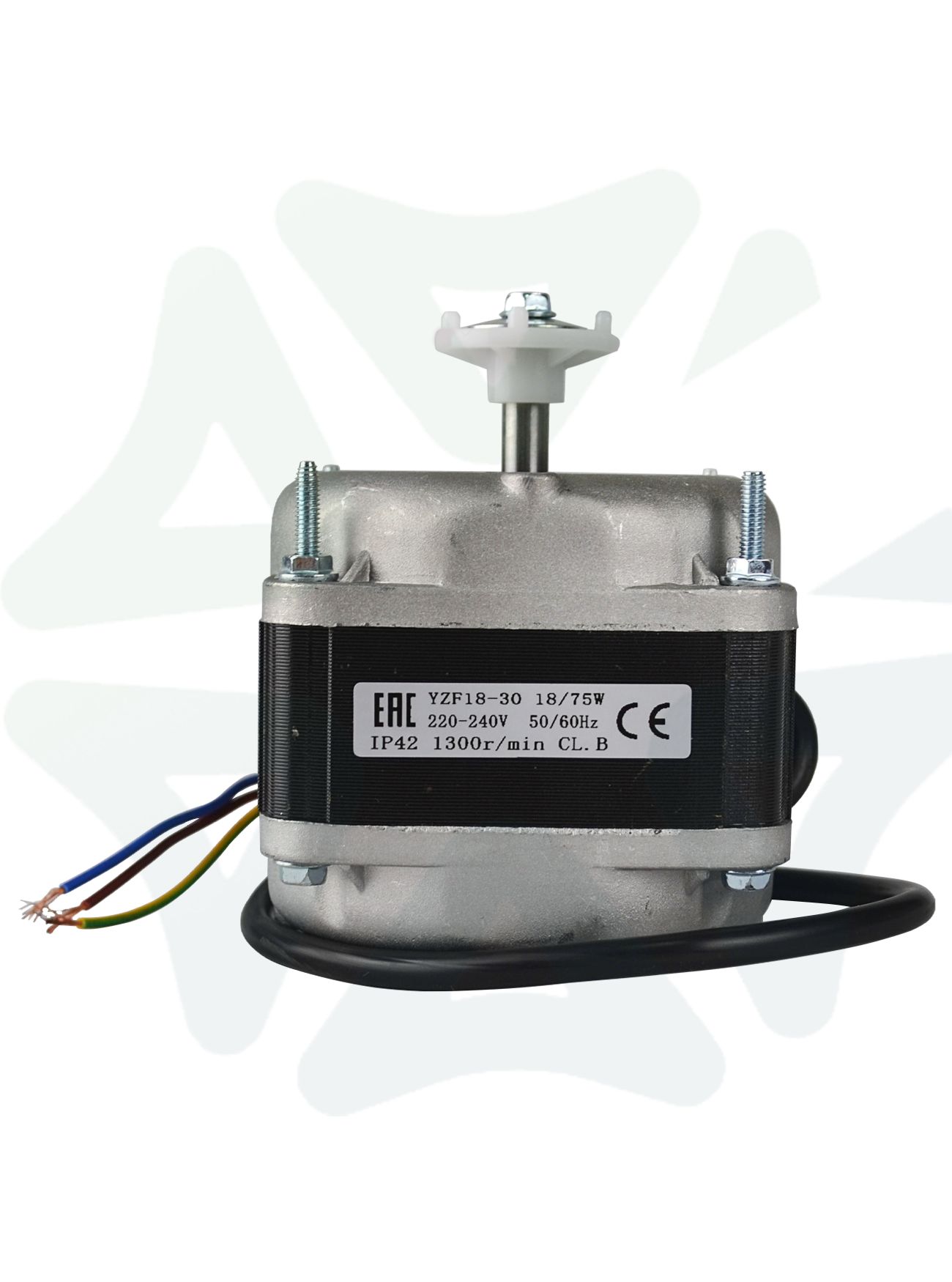 Он обеспечивает стабильное и эффективное охлаждение конденсаторов и испарителей в торговых холодильных витринах, ларях, шкафах и других установках. Работает от однофазной сети напряжением 220 В, 50 Гц, потребляет ток 0,48 А и развивает выходную мощность 18 Вт при скорости вращения 1300 об/мин. Направление вращения — против часовой стрелки (при взгляде со стороны вала), что соответствует стандартной схеме установки крыльчаток. Двигатель оснащён встроенной тепловой защитой, предотвращающей перегрев при длительной работе, и имеет степень защиты IP54, что обеспечивает устойчивость к пыли и брызгам воды. Эксплуатируется в широком температурном диапазоне — от –30 °C до +60 °C, что делает его идеальным решением для использования в условиях низких температур. Корпус выполнен из прочного металла, обеспечивая долгий срок службы и минимальную вибрацию. Универсальное крепление позволяет легко установить двигатель в различных конструкциях. Диаметр посадочного места под крыльчатку — 254 мм, вал диаметром 8 мм. В комплект поставки крыльчатка не входит и подбирается отдельно в зависимости от задачи. Благодаря низкому уровню шума (35–45 дБ) и высокой надёжности, двигатель YZF 18-30 широко применяется как в промышленных, так и в бытовых системах охлаждения.