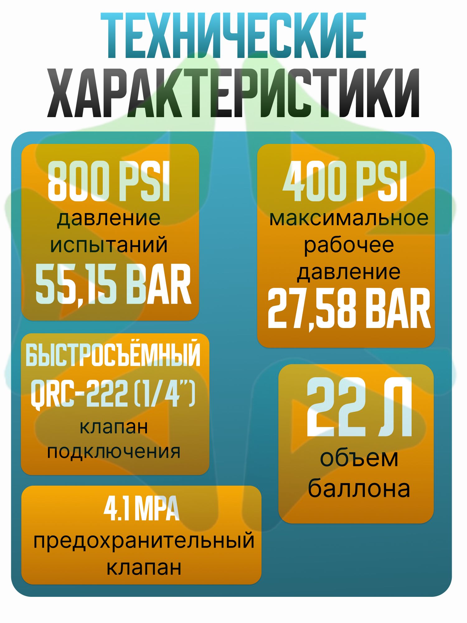 - Клапан подключения: Быстросъёмный QRC-222 (1/4");