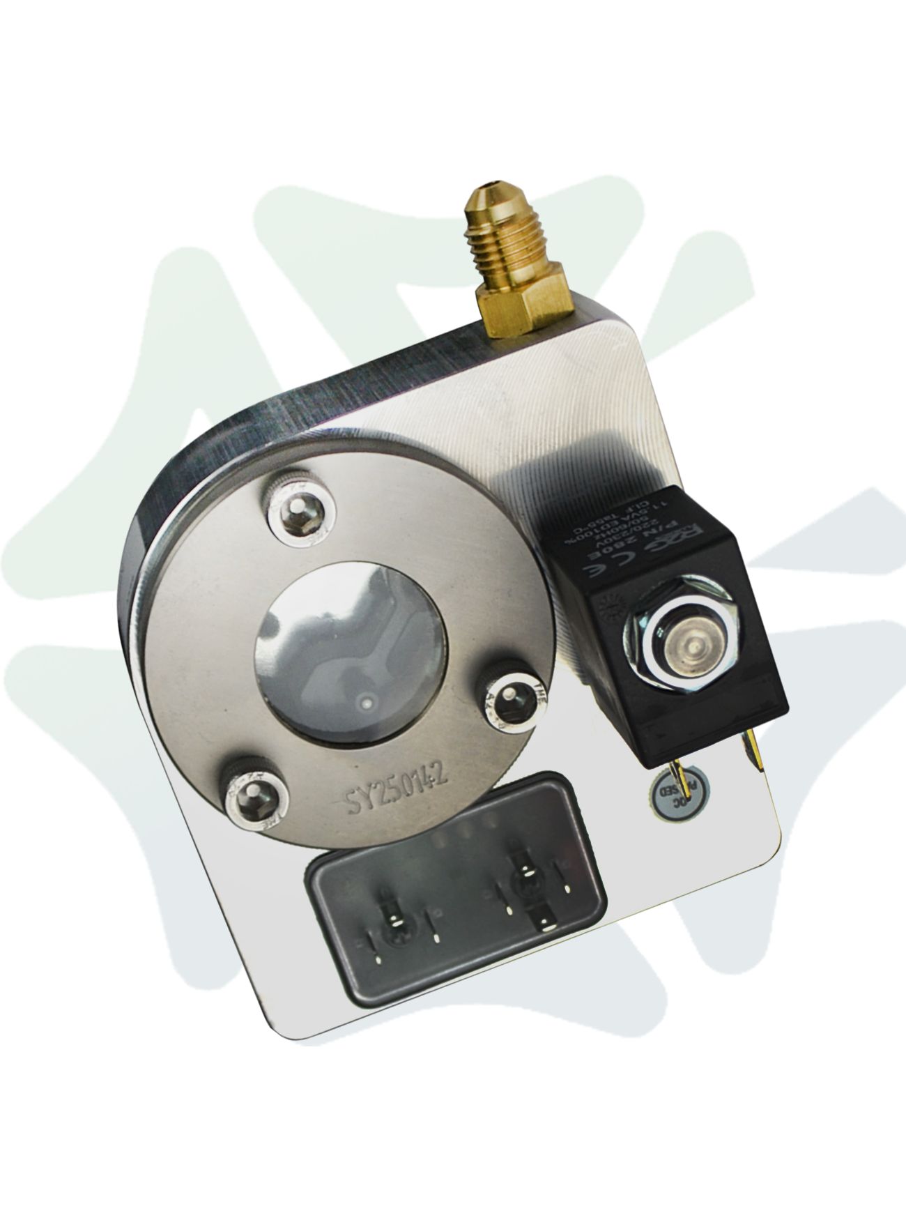 Конструктивно прибор выполнен в моноблочном корпусе из никелированной стали, обеспечивающей высокую коррозионную стойкость и механическую прочность. Для подключения к компрессору используется стандартное резьбовое соединение Rotalock 1 1/4"–12 UNF, а для подсоединения к масляной линии предусмотрен штуцер 7/16"–20 UNF с гайкой 1/4" SAE. В комплект входят кабели длиной 3 м для электрического подключения к сети 230 В, 50/60 Гц.