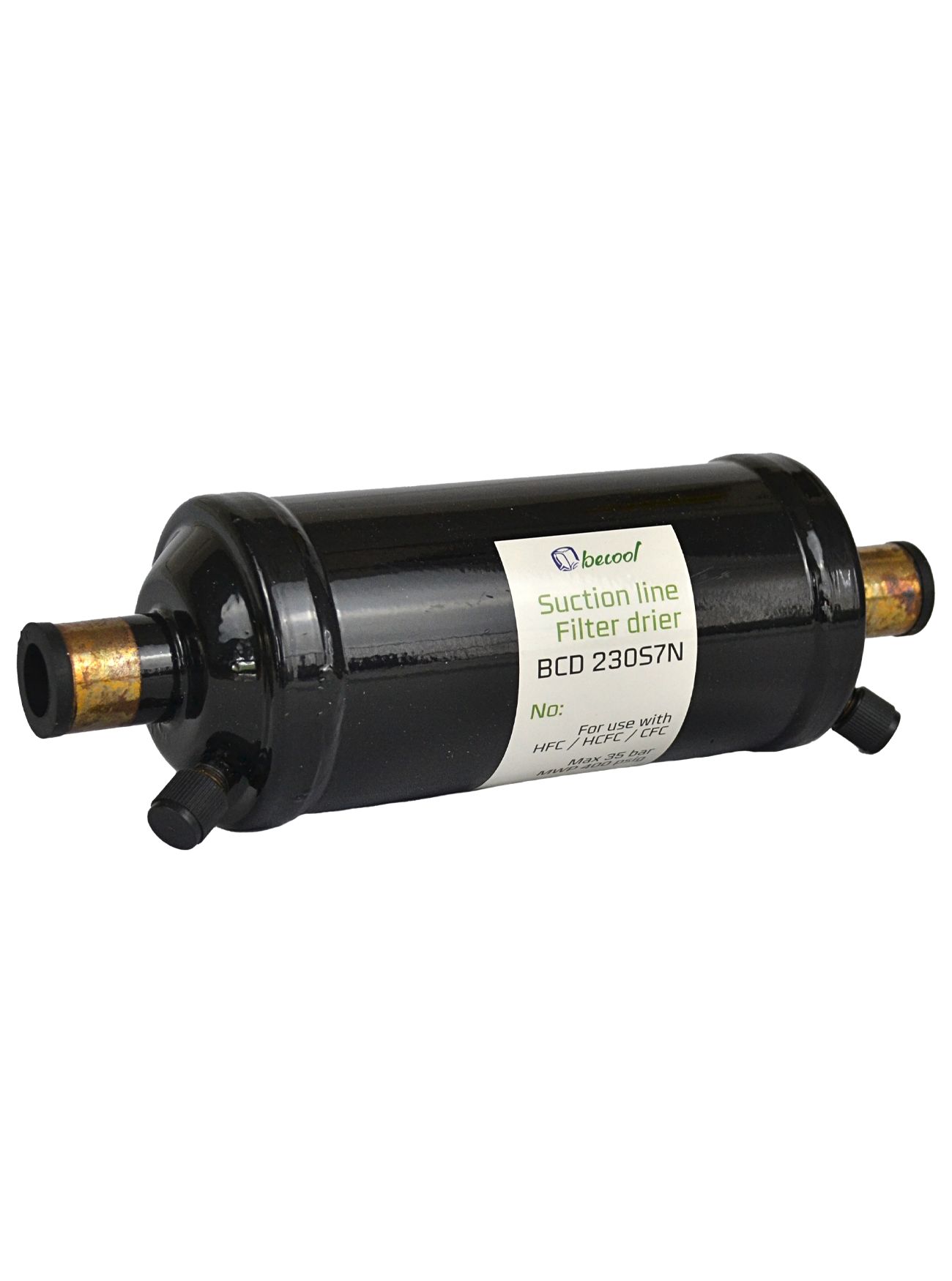 Фильтр-осушитель антикислотный BCD 230S7N от компании Becool - используется в жидкостных трубопроводах холодильных установок и систем кондиционирования воздуха. Он предназначен для поглощения влаги и кислот в всасывающих линиях, поддерживает чистоту холодильной системы и защищает металлические элементы от коррозии. Данный фильтр имеет паяное соединение, а вход и выход 7/8" ODF. BCD 230S7N имеет твёрдое ядро из молекулярного сита и активированной окиси алюминия, что позволяет ему работать даже при низком содержании влаги в хладагенте и высокой температуре жидкого хладагента. Фильтр быстро и качественно выполняет свои функции, поддерживая работу всей системы, совместим со всеми типами хладагентов, включая CFC, HCFC, HFC. BCD 230S7N представляет собой высокотехнологичное решение для защиты холодильных систем и кондиционеров. Каждый элемент конструкции изготовлен из премиальных материалов, обеспечивающих надежную и долговечную работу оборудования. Данный фильтр совместим со всеми основными типами минеральных, алкилбензольных и синтетических масел, используемых в холодильных системах. Это обеспечивает надёжную и долговечную работу оборудования.