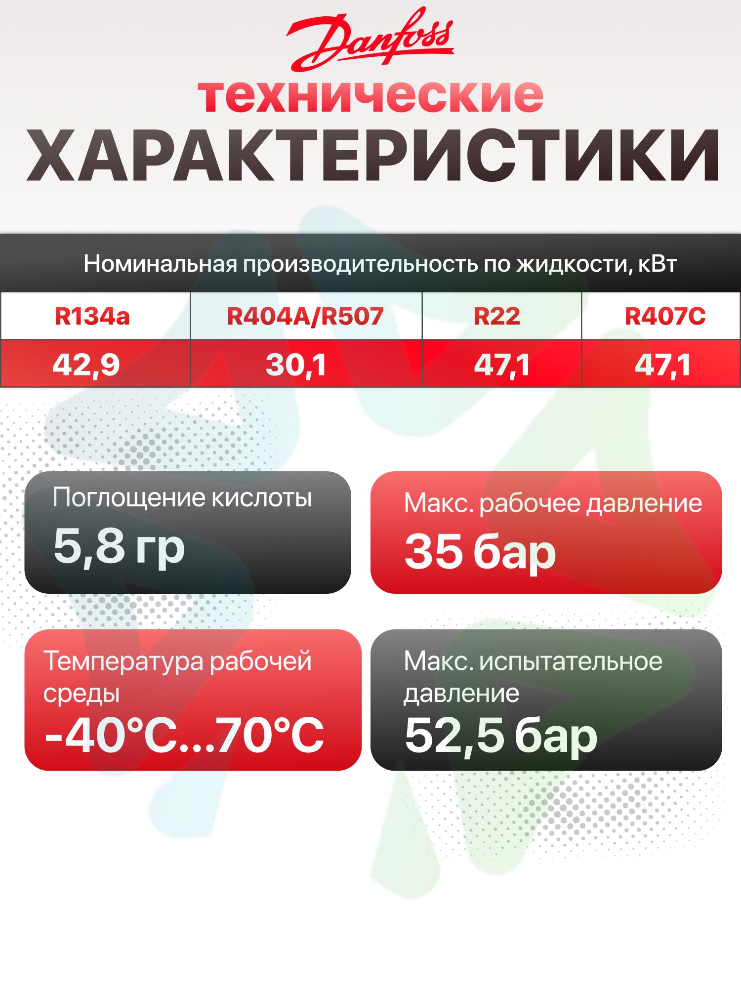 Антикислотный фильтр-осушитель DAS 165sVV ODF 5/8" (под пайку, артикул 023Z1010) – это надежное решение для защиты холодильных установок и систем кондиционирования воздуха от бренда Danfoss ( Ридан ), использующих фторсодержащие хладагенты. Он предназначен для установки во всасывающие линии, где эффективно удаляет продукты разложения обмоток электродвигателя компрессора, предотвращая повреждения и продлевая срок службы оборудования.