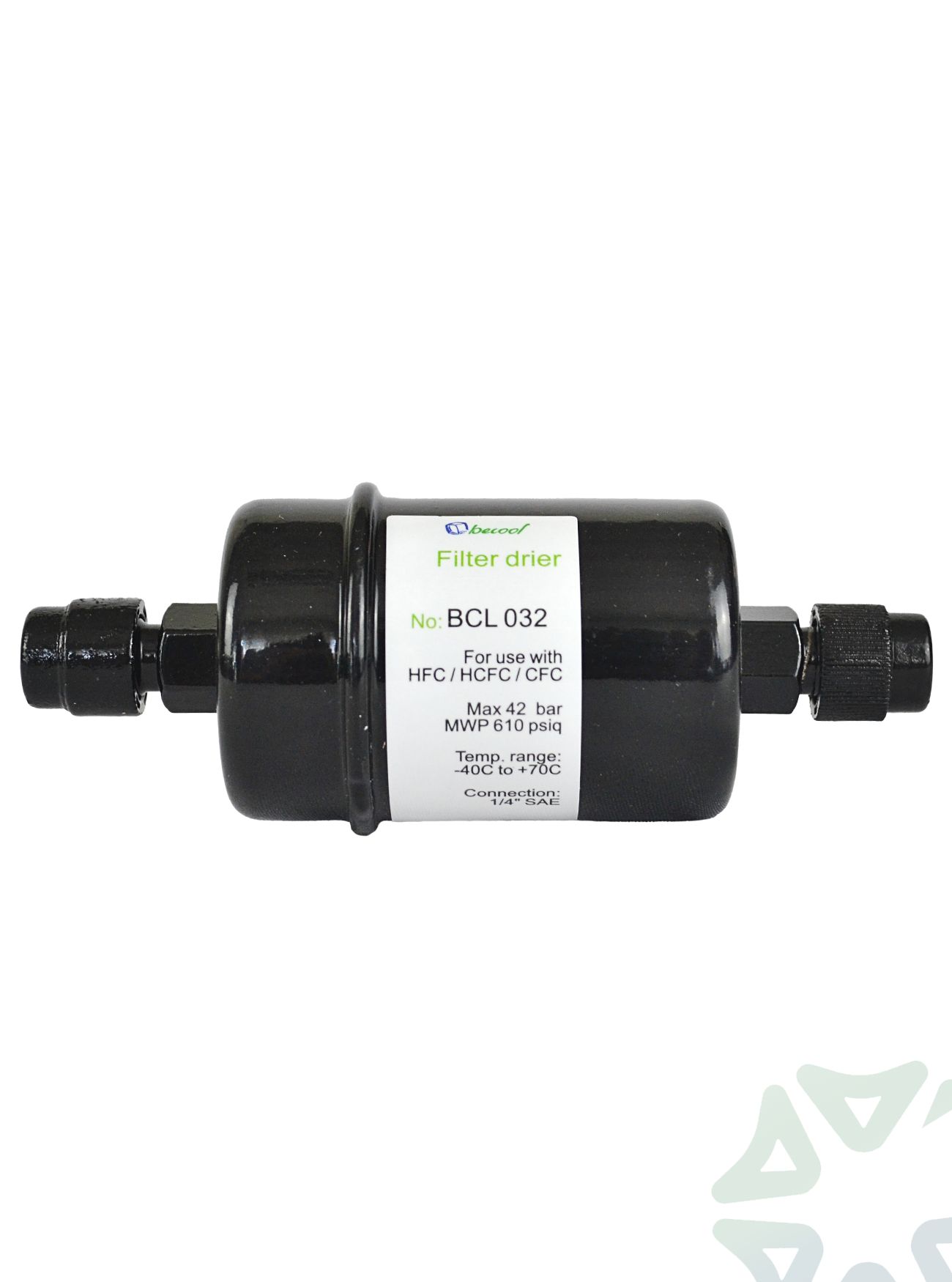 Фильтр-осушитель BCL 032 от компании Becool - используется в жидкостных трубопроводах холодильных установок и систем кондиционирования воздуха. Он предназначен для поглощения влаги и кислот, поддерживает чистоту холодильной системы и защищает металлические элементы от коррозии. Данный фильтр имеет резьбовое соединение, а вход и выход 1/4" SAE. BCL 032 имеет твёрдое ядро из молекулярного сита и активированной окиси алюминия, что позволяет ему работать даже при низком содержании влаги в хладагенте и высокой температуре жидкого хладагента. Фильтр быстро и качественно выполняет свои функции, поддерживая работу всей системы, совместим со всеми типами хладагентов, включая CFC, HCFC, HFC.