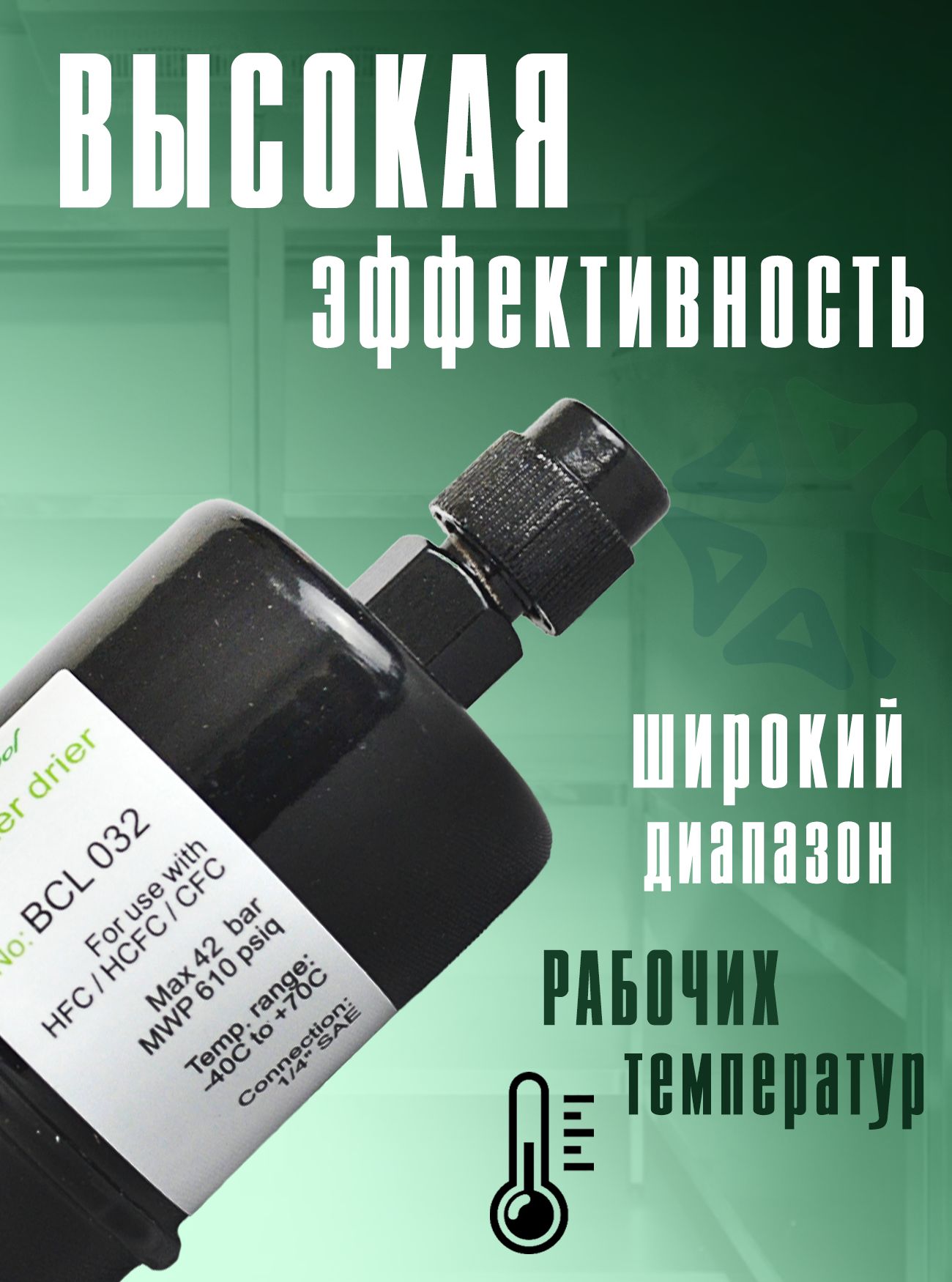 BCL 032 отличается компактными размерами и продуманной конструкцией, что позволяет легко интегрировать его в различные системы охлаждения. Корпус фильтра выполнен из прочных материалов, устойчивых к воздействию агрессивных хладагентов и высоких температур.