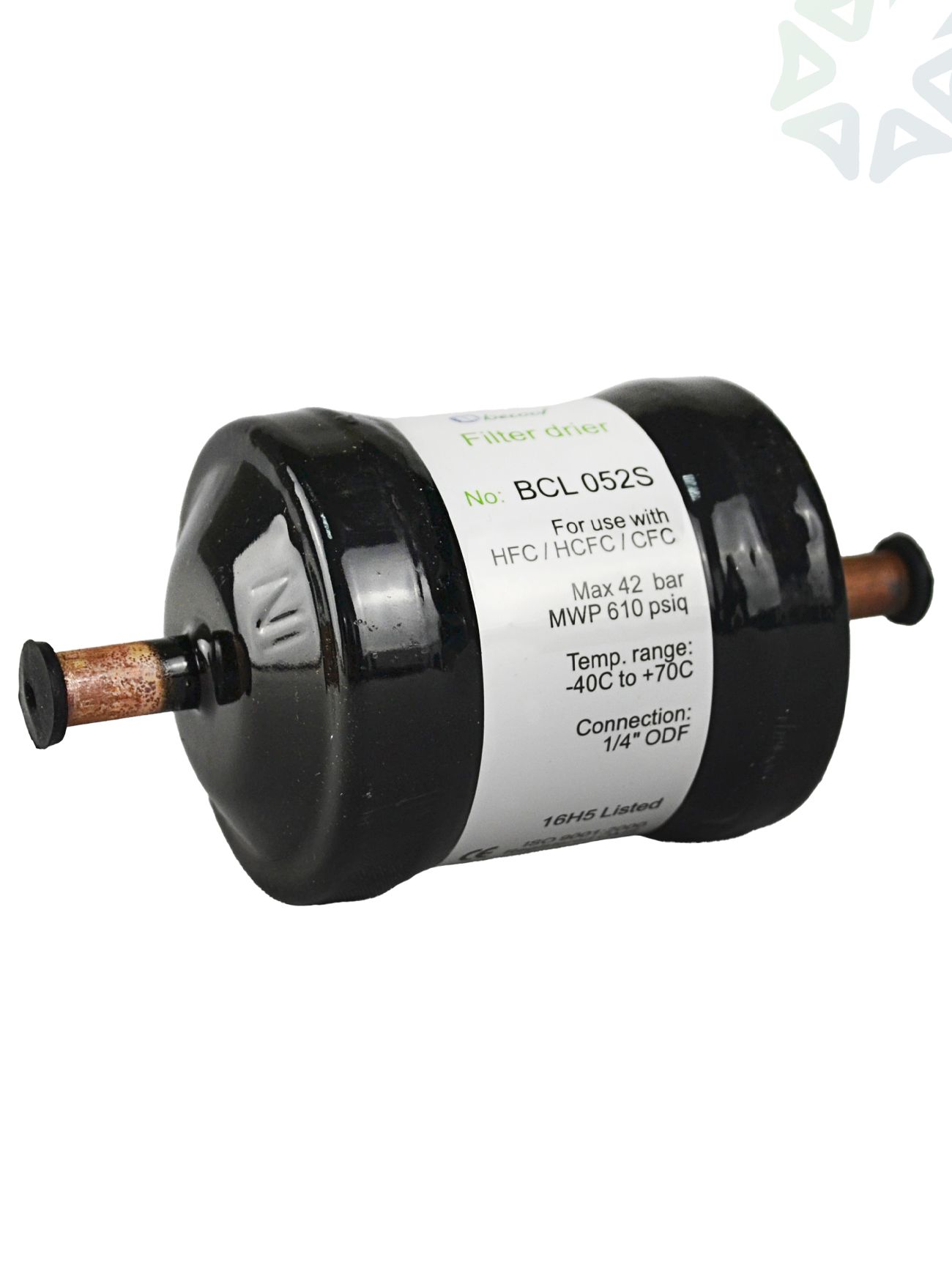 Фильтр-осушитель BCL 052S от компании Becool - используется в жидкостных трубопроводах холодильных установок и систем кондиционирования воздуха. Он предназначен для поглощения влаги и кислот, поддерживает чистоту холодильной системы и защищает металлические элементы от коррозии. Данный фильтр имеет паяное соединение, а вход и выход 1/4" ODF. BCL 052S имеет твёрдое ядро из молекулярного сита и активированной окиси алюминия, что позволяет ему работать даже при низком содержании влаги в хладагенте и высокой температуре жидкого хладагента. Фильтр быстро и качественно выполняет свои функции, поддерживая работу всей системы, совместим со всеми типами хладагентов, включая CFC, HCFC, HFC.