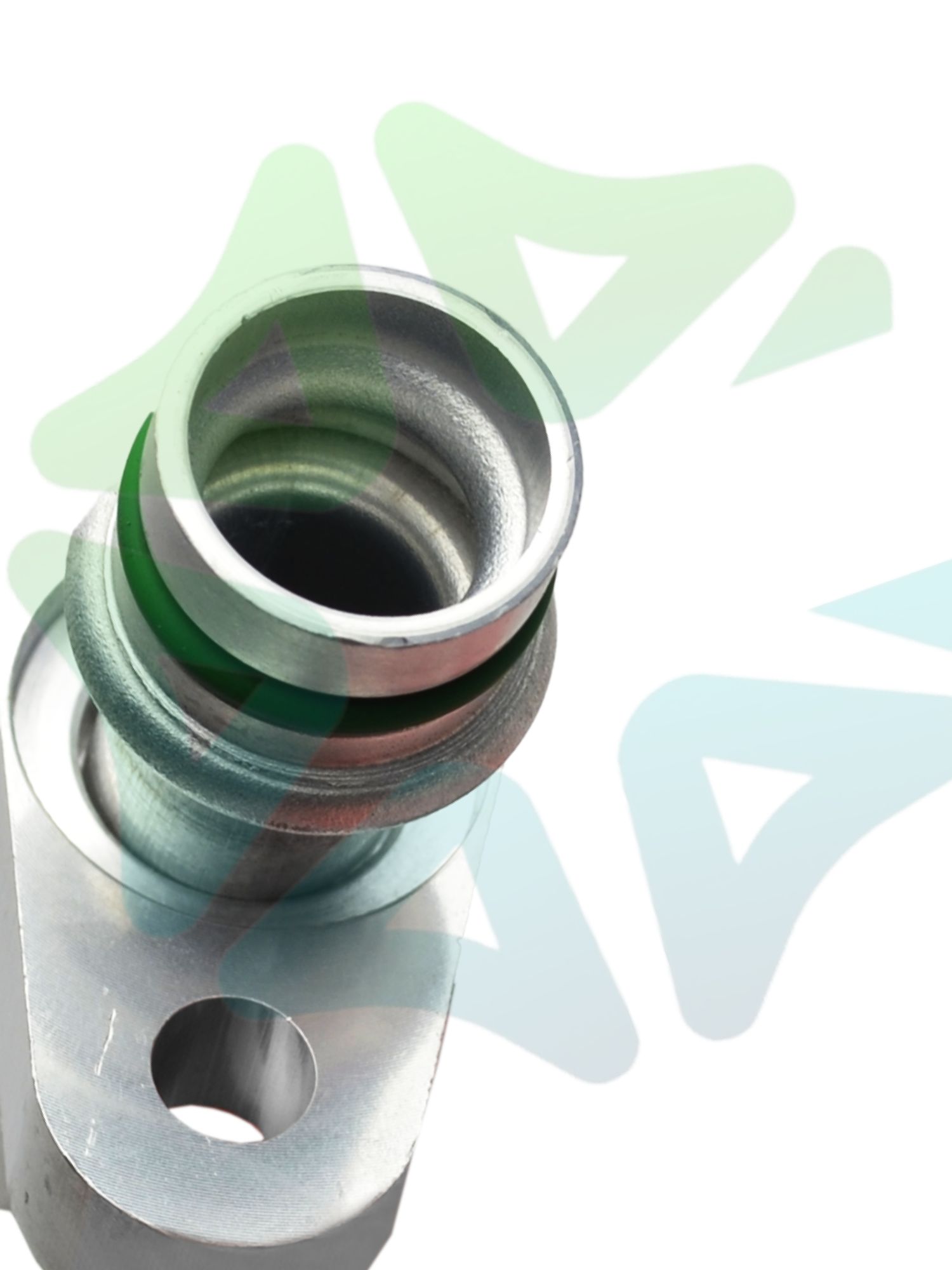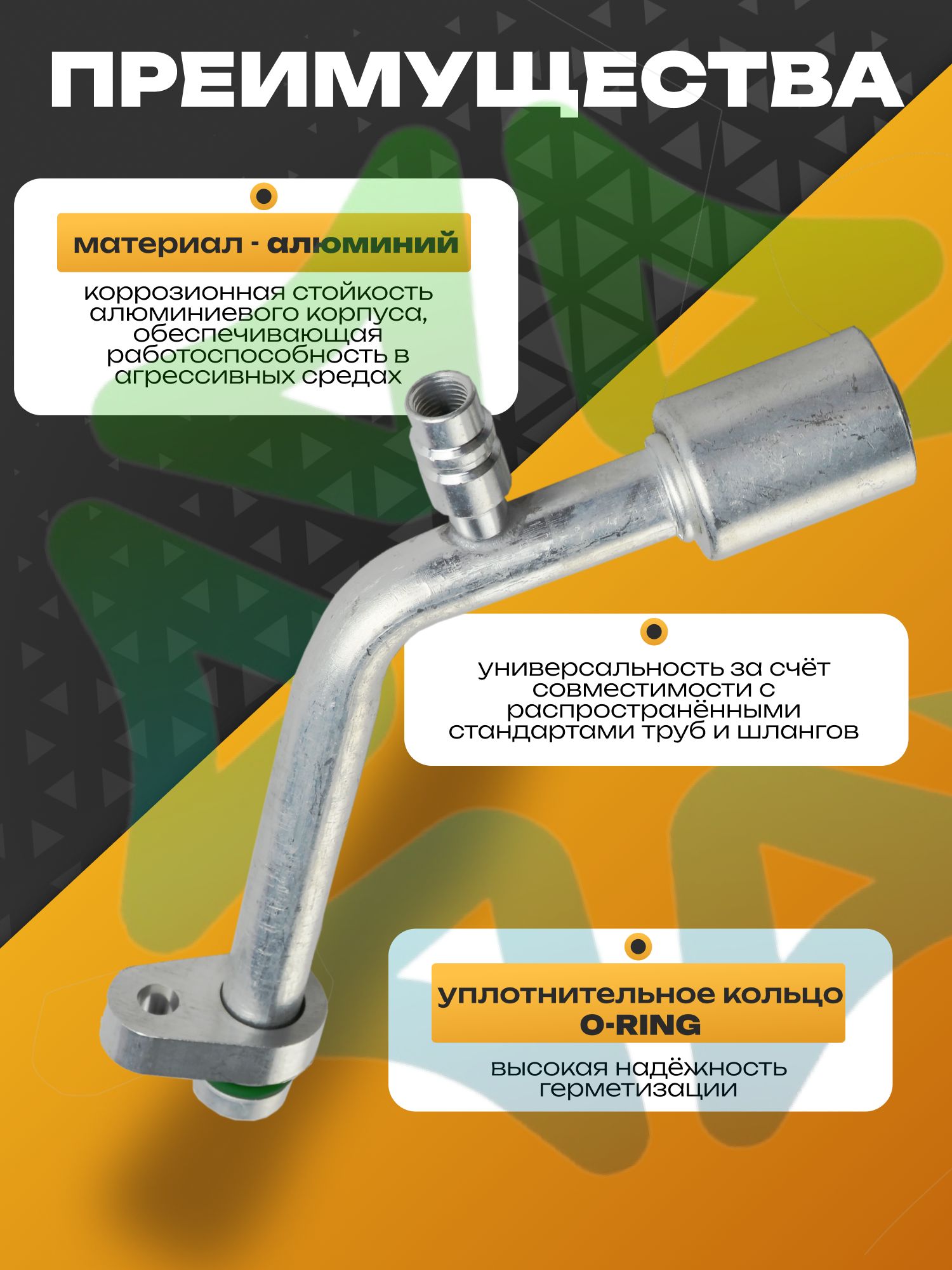Фитинг соединительный RC‑U07345 под обжимку — элемент для трубопроводов автомобильных кондиционеров, обеспечивающий герметичное соединение труб и шлангов в системах циркуляции хладагента. Эта соединительная деталь трубопровода изготовлена из алюминия, что гарантирует коррозионную стойкость. Фитинг оснащён обжимным типом соединения с уплотнительным кольцом O‑Ring, обеспечивающим герметичность даже при вибрационных нагрузках.