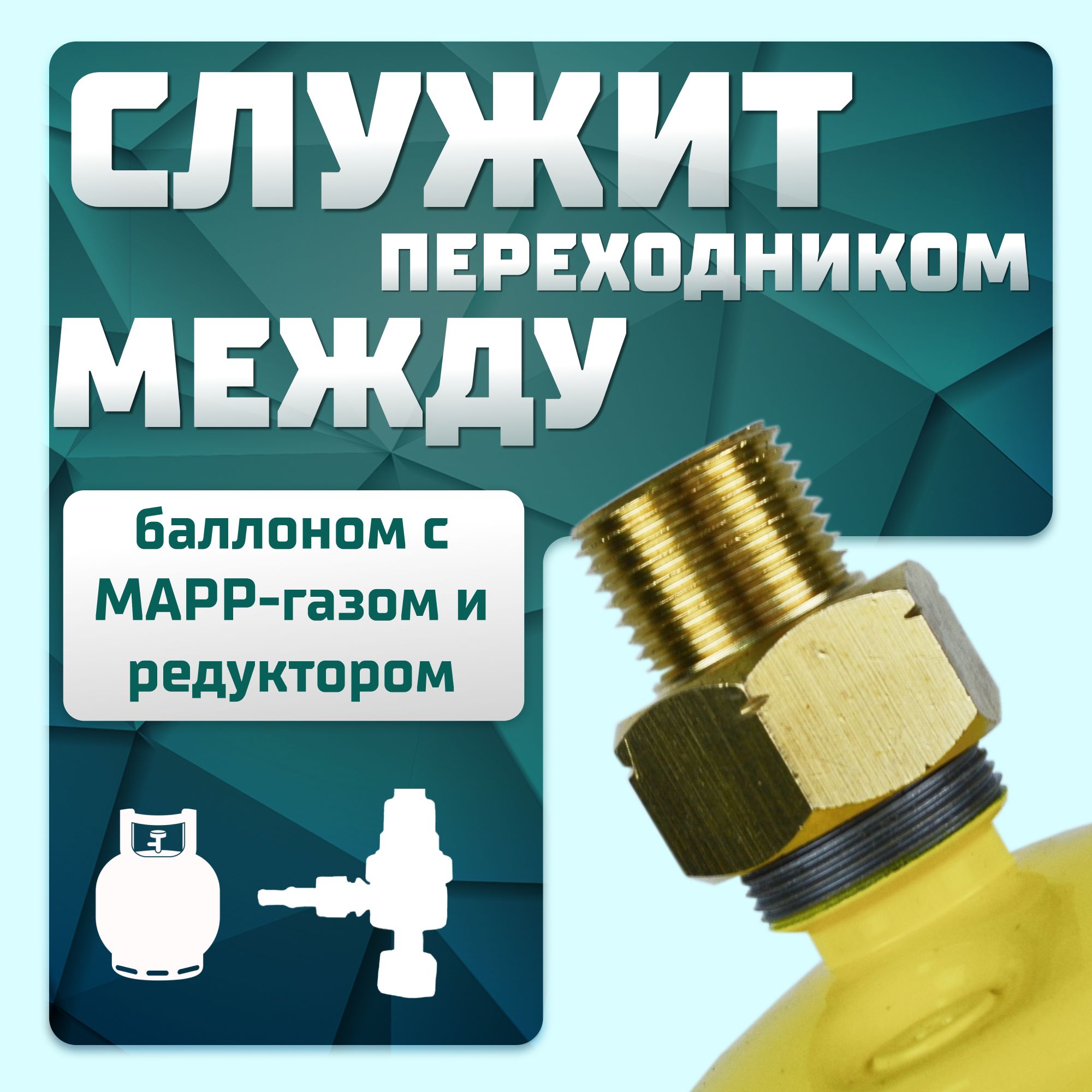Данная гайка-переходник является устройством, предназначенным для надежного и безопасного соединения между баллоном с MAPP-газом и редуктором. Этот переходник прост в использовании: достаточно вкрутить его в баллон и сверху присоединить редуктор. Гайка-переходник изготовлен из латуни.
