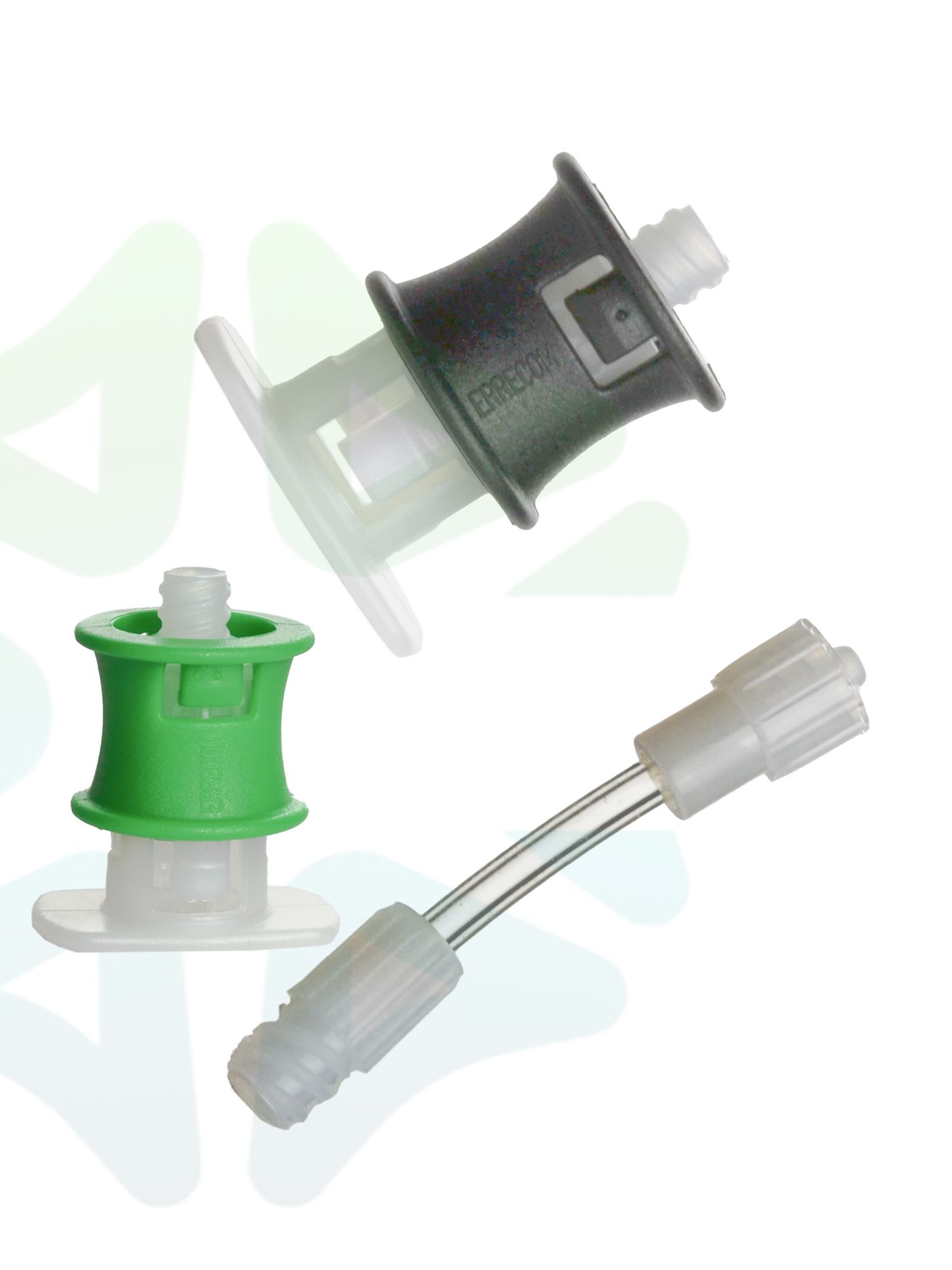 - Адаптер зеленого цвета с быстроразъемным соединением и системой безопасности для предотвращения утечки хладагента, который должен быть подключен к зарядному клапану низкого давления систем кондиционирования автомобилей, работающих на газе хладагента R1234yf.