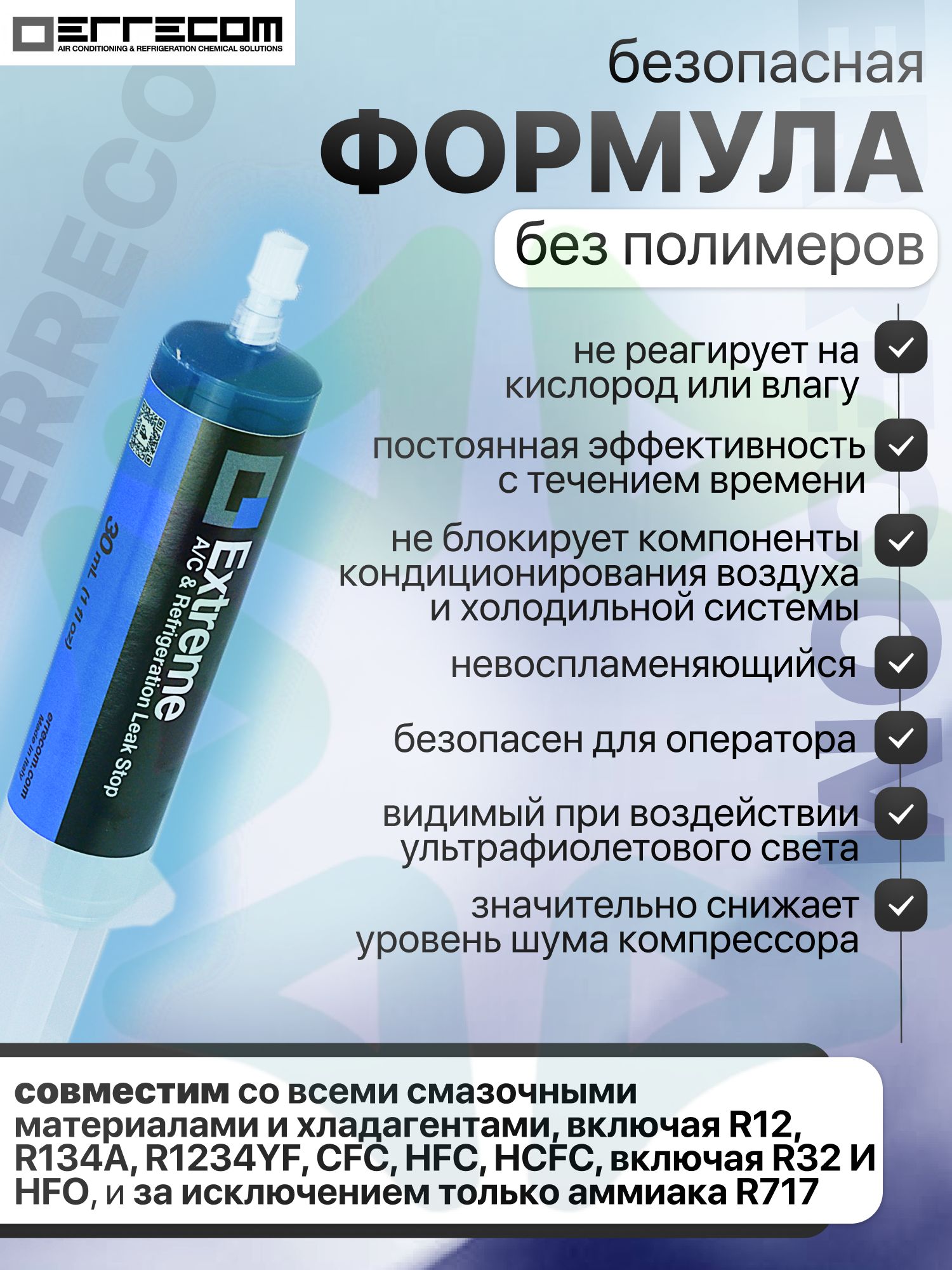 · Безопасен для систем кондиционирования и охлаждения.