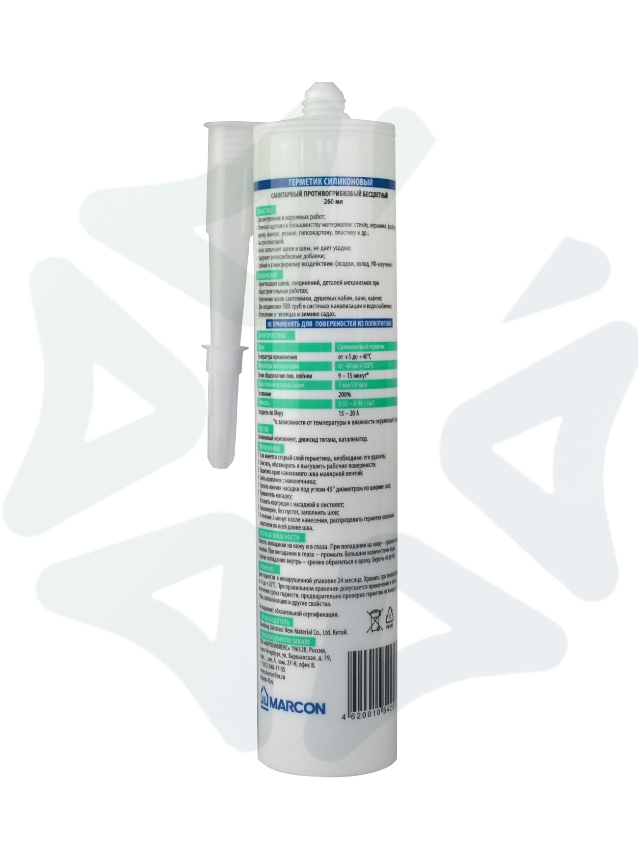 Не предназначен для обработки металлических, бетонных и полиэтиленовых поверхностей, а также не подлежит окраске после нанесения. Объём упаковки — 260 мл, поставляется в тубе, совместимом со стандартным пистолетом для герметиков.