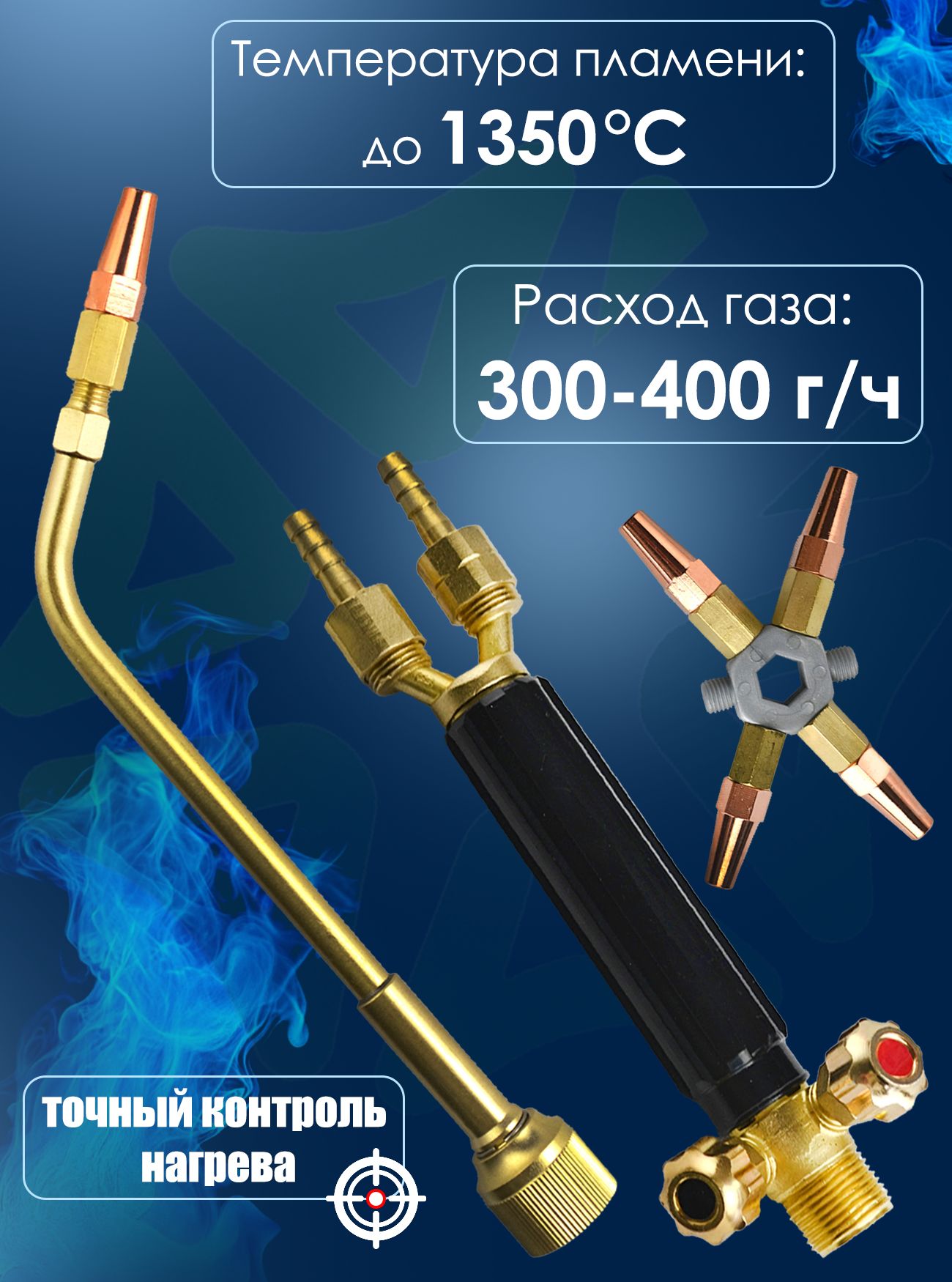 Конструкция горелки выполнена из высококачественной латуни и стали с термостойким покрытием, устойчивым к коррозии и перегреву. Вес устройства составляет всего 350–400 граммов, а длина — около 180 мм, что делает её компактной и удобной для переноски.