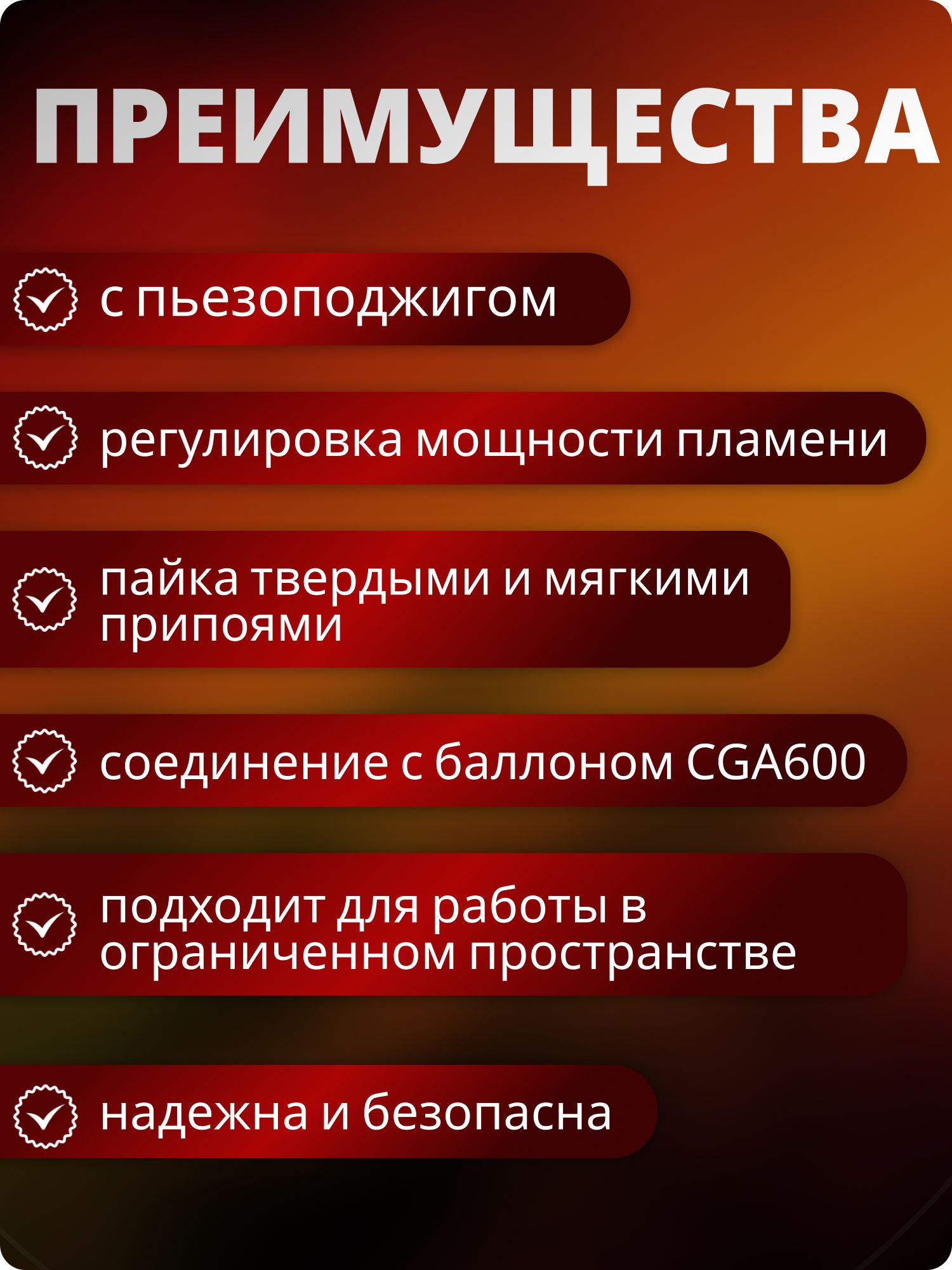 Одна из ключевых особенностей T-CA — пьезоподжиг, который обеспечивает мгновенное зажигание без дополнительных источников пламени. Шланг длиной 1,5 м позволяет свободно перемещаться по рабочей зоне, а точная регулировка мощности пламени помогает настраивать горелку под конкретные задачи, будь то пайка твердыми или мягкими припоями.