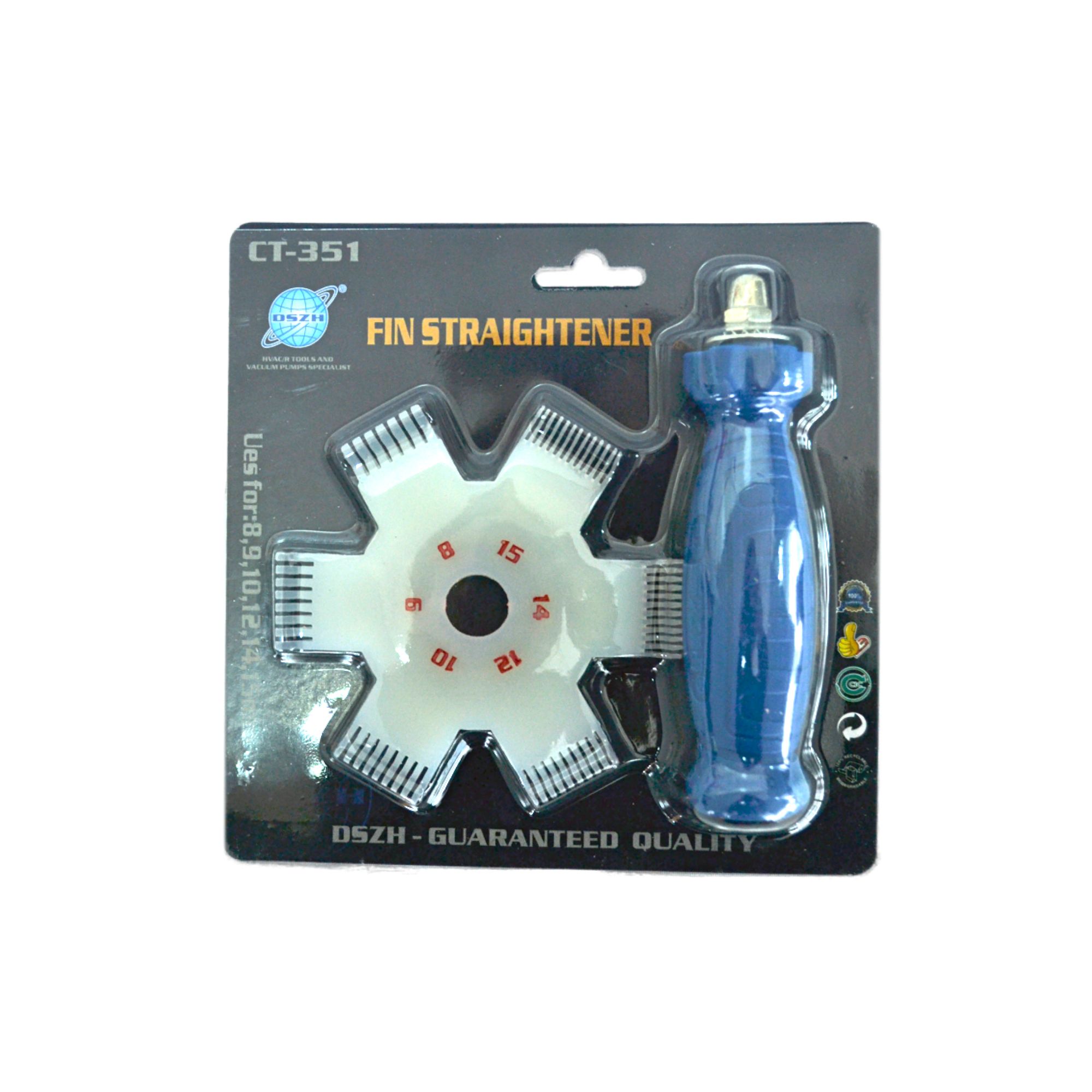 Гребенка CT-351 от компании DSZH — универсальный инструмент для выправления замявшихся рёбер теплообменников. Она оснащена рабочей частью в виде шестерёнки с шестью зубьями, каждый из которых представляет собой отдельную гребёнку с разным шагом между прорезями. Гребенка подходит для теплообменников с шагами оребрения 8, 9, 10, 12, 14 и 15 рёбер на дюйм. В комплект входят рукоятка, крепёжная гайка и стопорная шайба. Благодаря гребенки CT-351,Вам будет легко и удобно выравнивать замятые рёбра теплообменников. без особого труда.