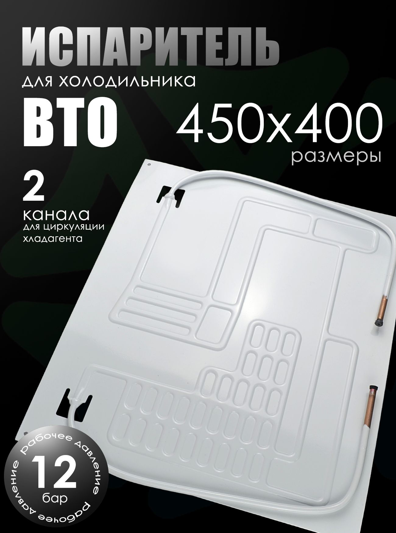 Благодаря испарителю ВТО 450×400 с двумя каналами обеспечивается эффективная и стабильная работа холодильного агрегата в бытовых холодильниках.