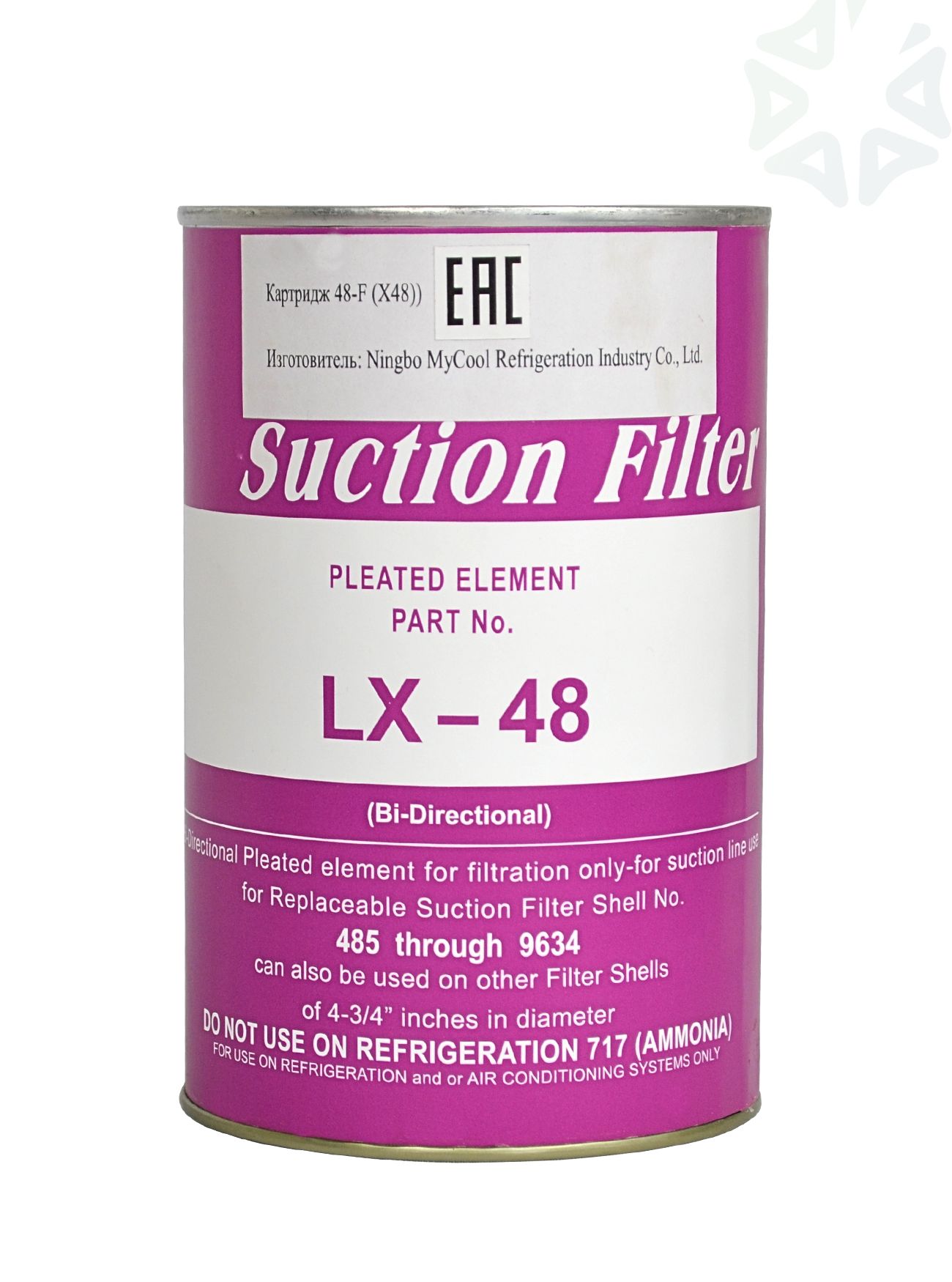 Картридж очиститель LX-48 предназначен для установки в разборные фильтры-осушители холодильного оборудования. LX-48 — это сетчатый фильтрующий элемент, совместимый со всеми хладагентами. Он задерживает частицы размером более 15 микрометров и устанавливается во всасывающей или жидкостной линии. Картридж предназначен для фильтрации и очистки системы от продуктов износа трущихся пар и мелких механических частиц.