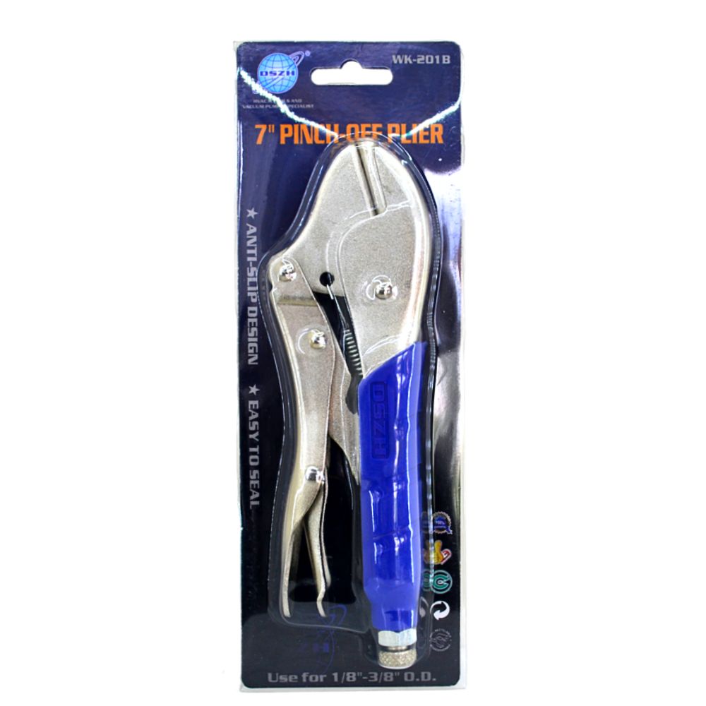 Клещи пережимные WK-201B от компании DSZH используются для пережатия медных трубок диаметрами 1/8, 1/4, 3/8, 5/16, 1/2 в холодильных оборудованиях и системах кондиционирования. Клещи WK-201B- это уникальный предмет, обеспечивающий надёжность и долговечность, благодаря сплаву из высококачественной стали и прочной конструкции. Так же, данные клещи обладают регулируемым механизмом-защелкой, фиксирующим их в закрытом состоянии с помощью чего можно легко и без труда обеспечить герметичность места пережатия медной трубки. Помимо этого, его компактные размеры и небольшой вес позволяют легко хранить и переносить данный инструмент.