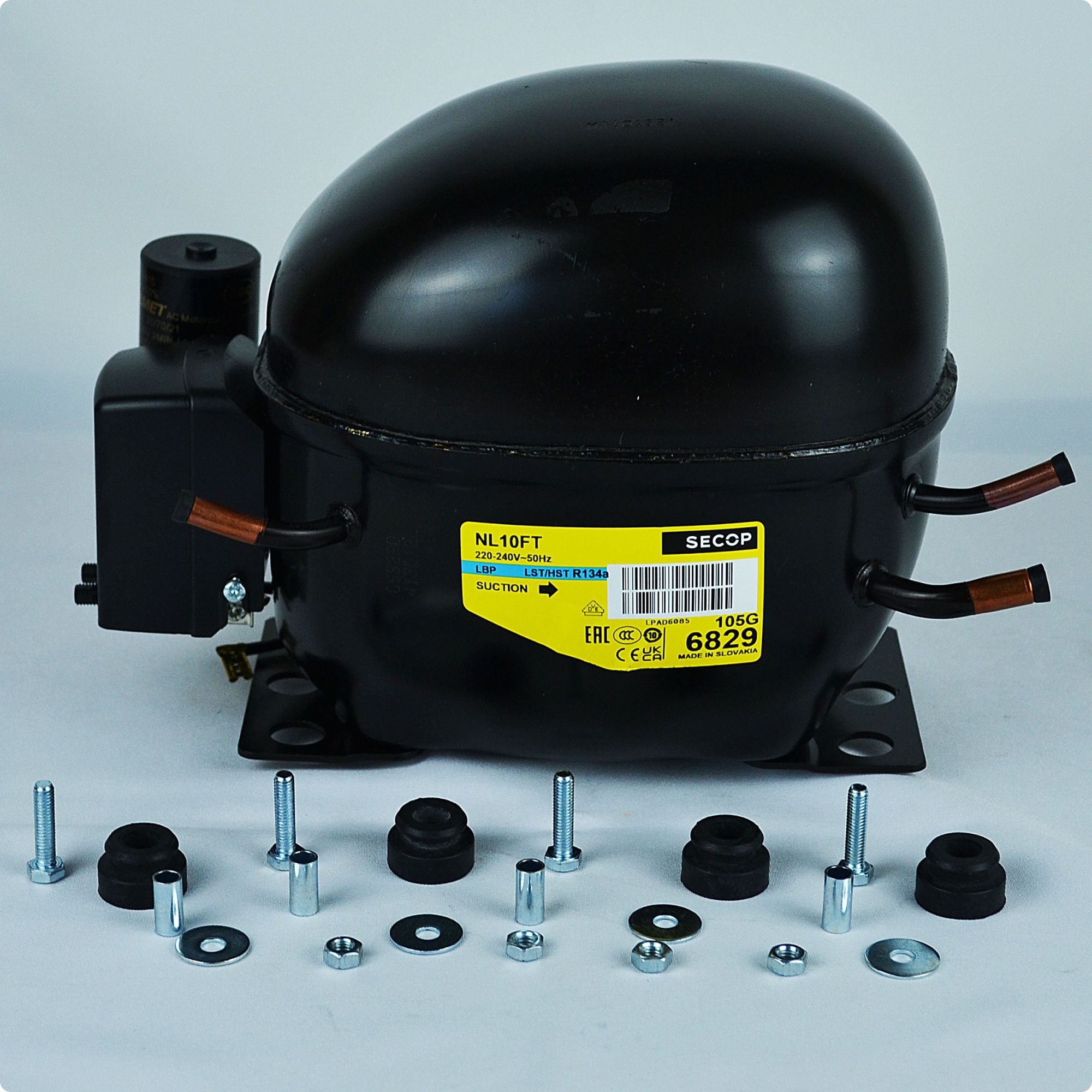 Компрессор NL10FT LBP - это надежный герметичный поршневой агрегат от бренда SECOP для холодильного оборудования. Данный компрессор является среднетемпературным, работает с хладагентом R134a.
