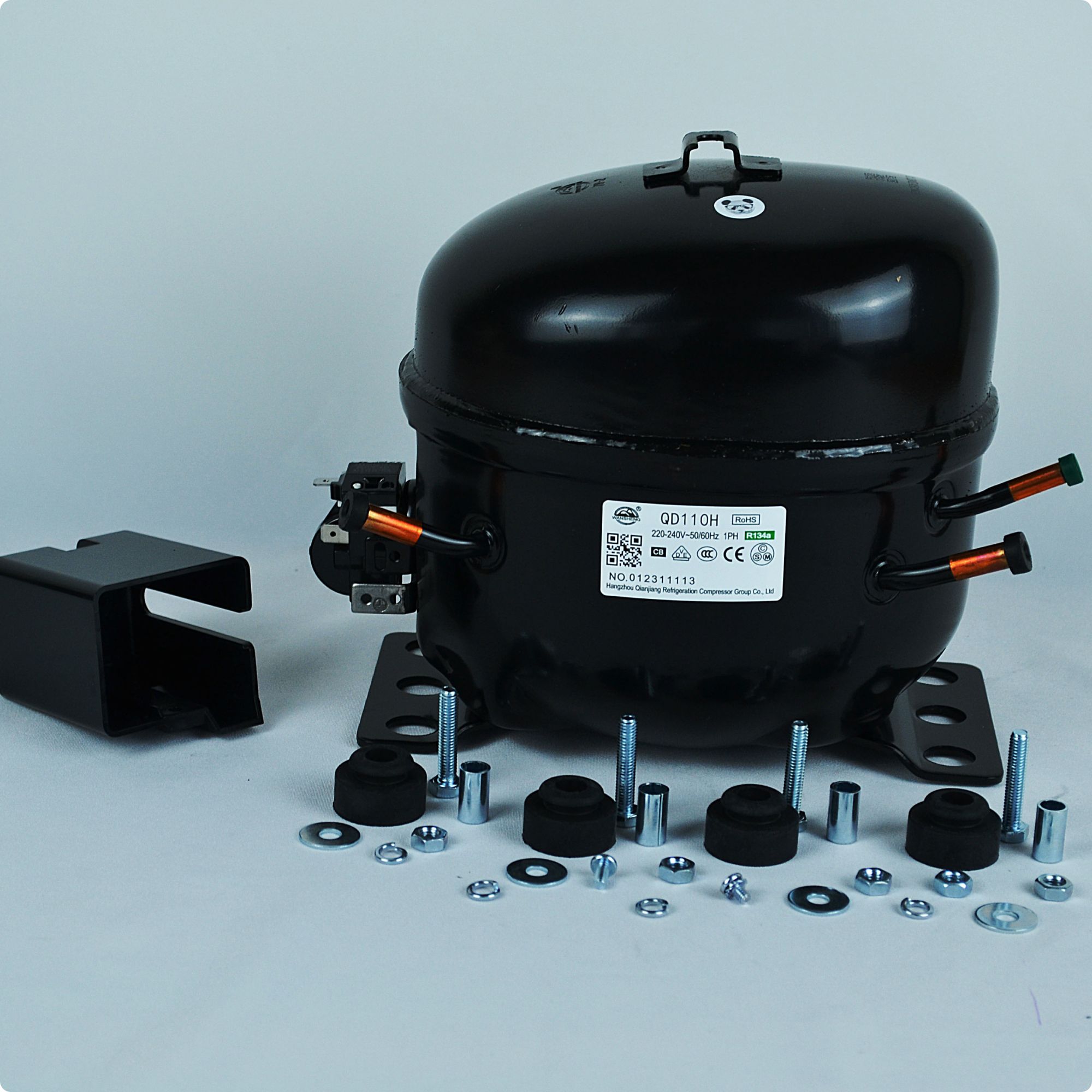 Компрессор QD110H LBP - это надежный герметичный поршневой агрегат от бренда Wansheng для холодильного оборудования. Данный компрессор является низкотемпературным и работает с хладагентом R134a.