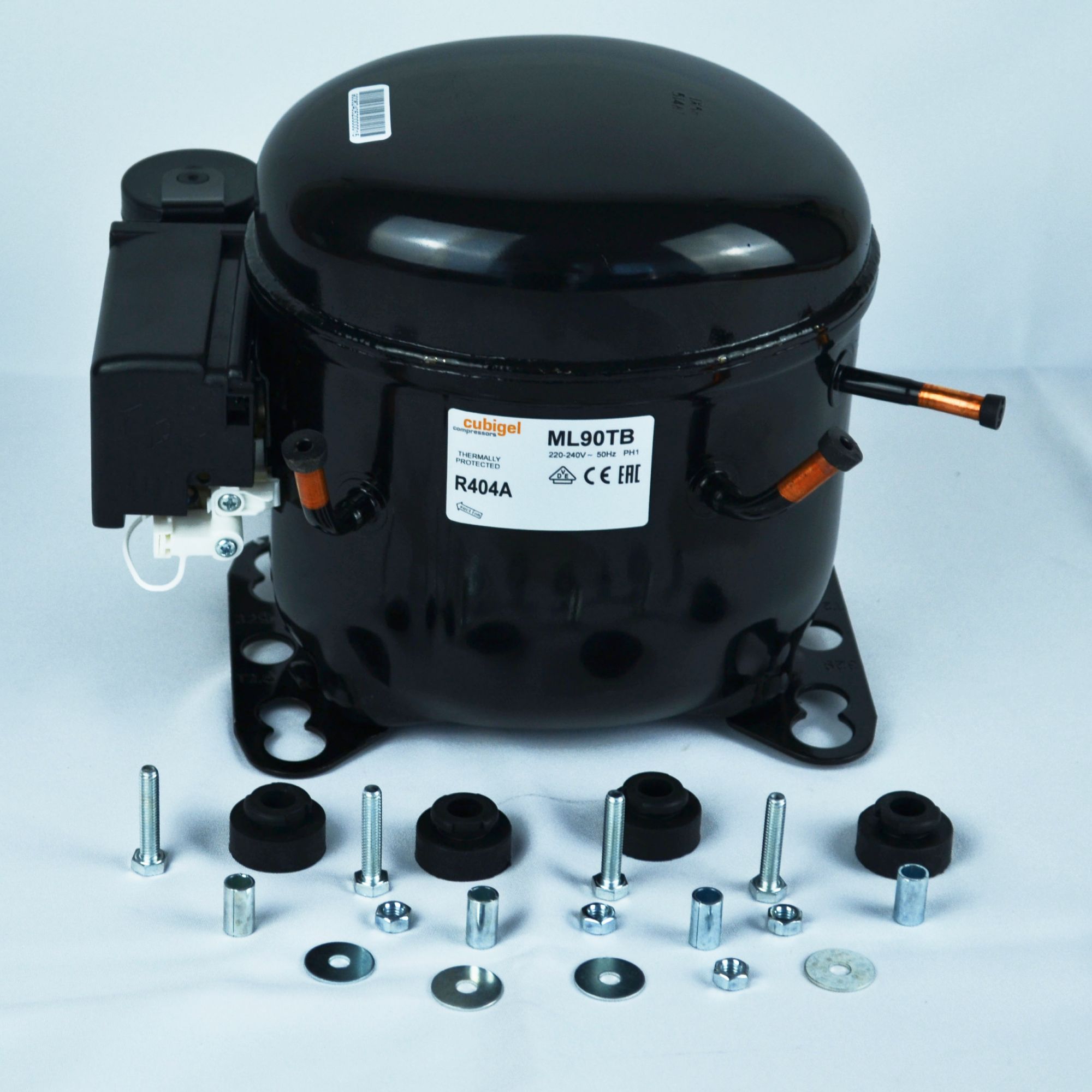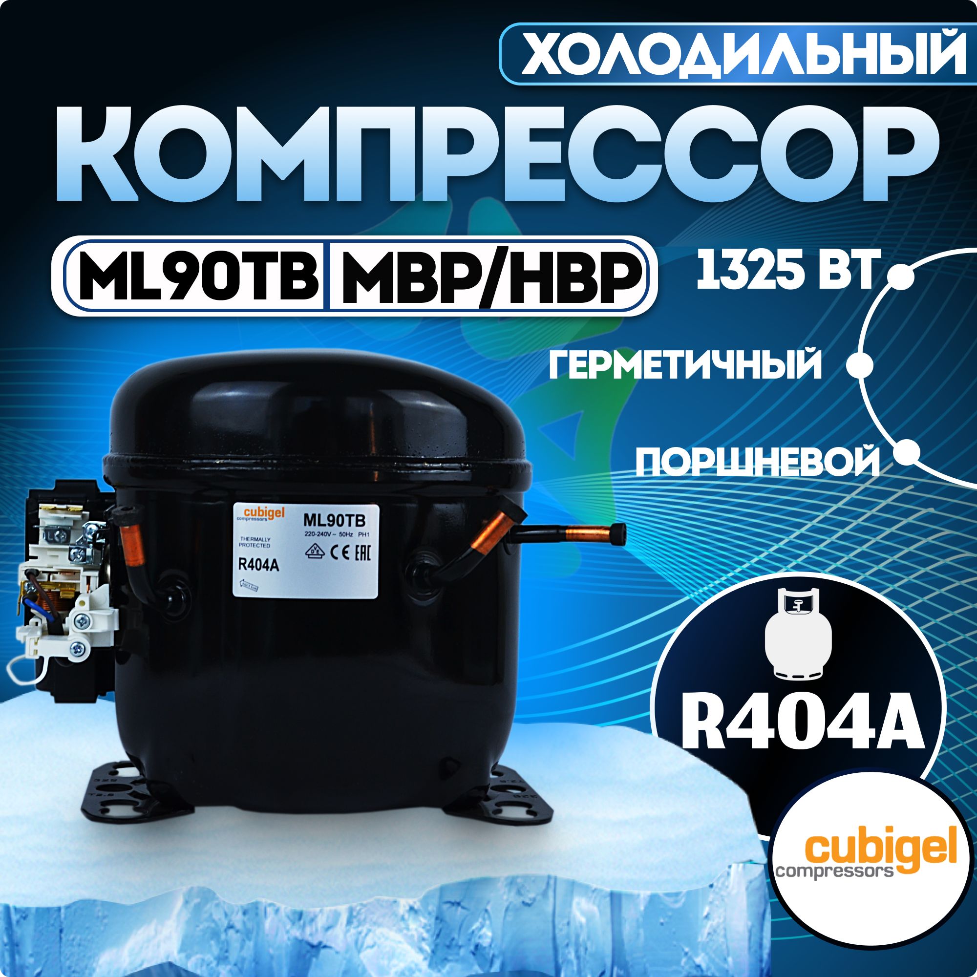 Компрессор ML90TB (MBP/HBP) с пусковым конденсатором - это надежный герметичный поршневой агрегат от бренда CUBIGEL для коммерческого холодильного оборудования. Данный компрессор является среднетемпературным (MBP) и высокотемпературным (HBP). ML90TB работает с хладагентом R404А. Этот холодильный агрегат имеет двигатель HST (с высоким пусковым моментом), после запуска которого разъединяется вспомогательная обмотка. Типы подключения: