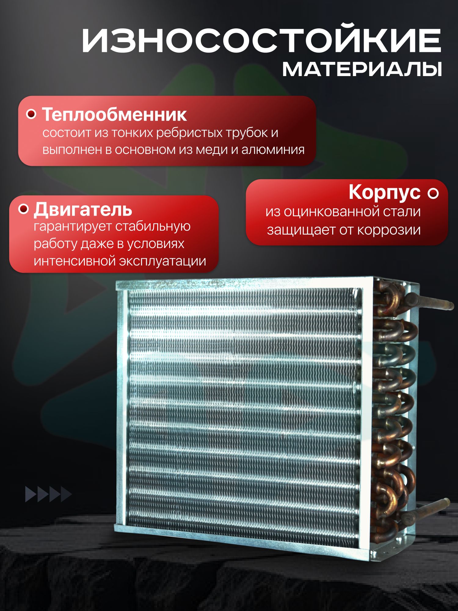 Вентилятор, оснащённый крыльчаткой диаметром 254 мм, создаёт мощный и равномерный воздушный поток, обеспечивая интенсивное охлаждение теплообменника. Шахматное расположение трубок исключает образование аэродинамической тени, что позволяет достичь максимальной равномерности распределения воздуха и предотвращает локальный перегрев. Это особенно важно для длительной и бесперебойной работы оборудования в условиях повышенных нагрузок.