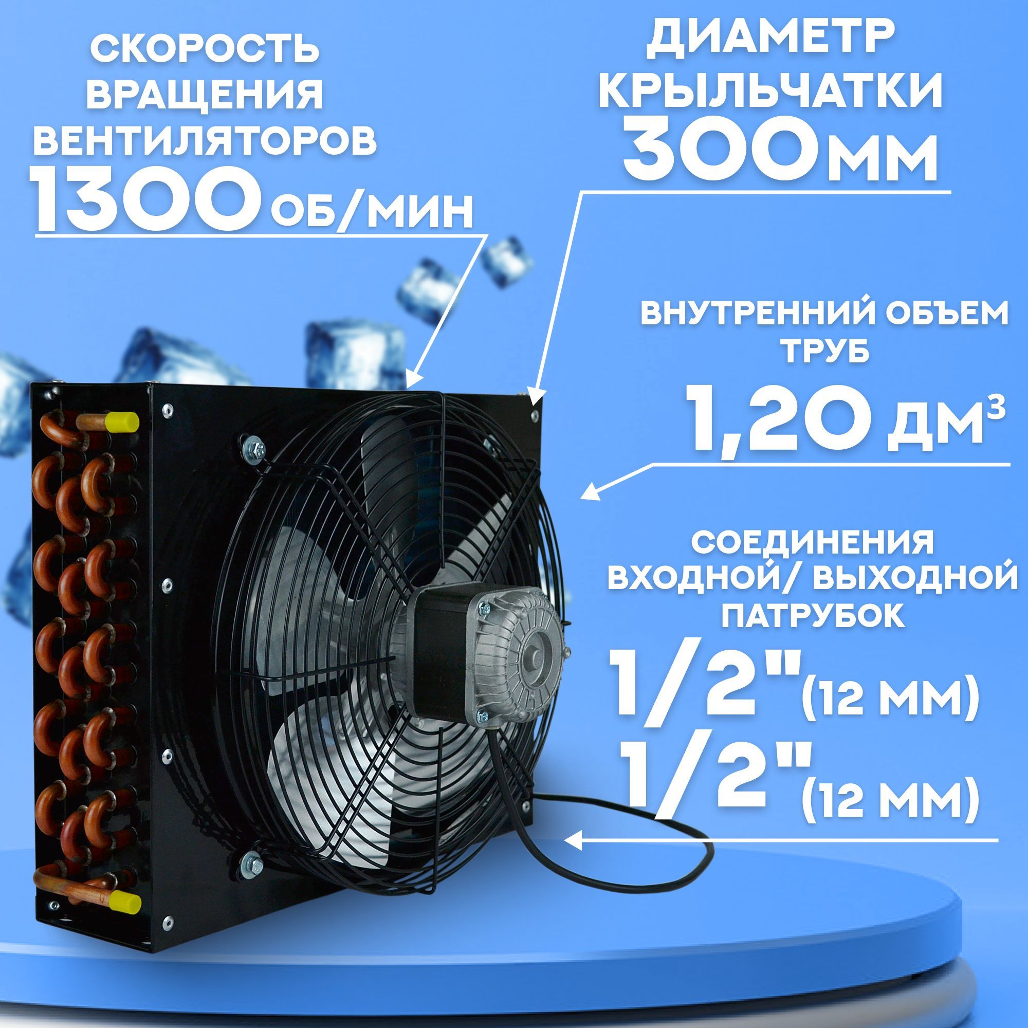 Данный конденсатор продается в сборе с 4-х полюсным двигателем вентилятора , крыльчаткой 300 мм и решеткой.