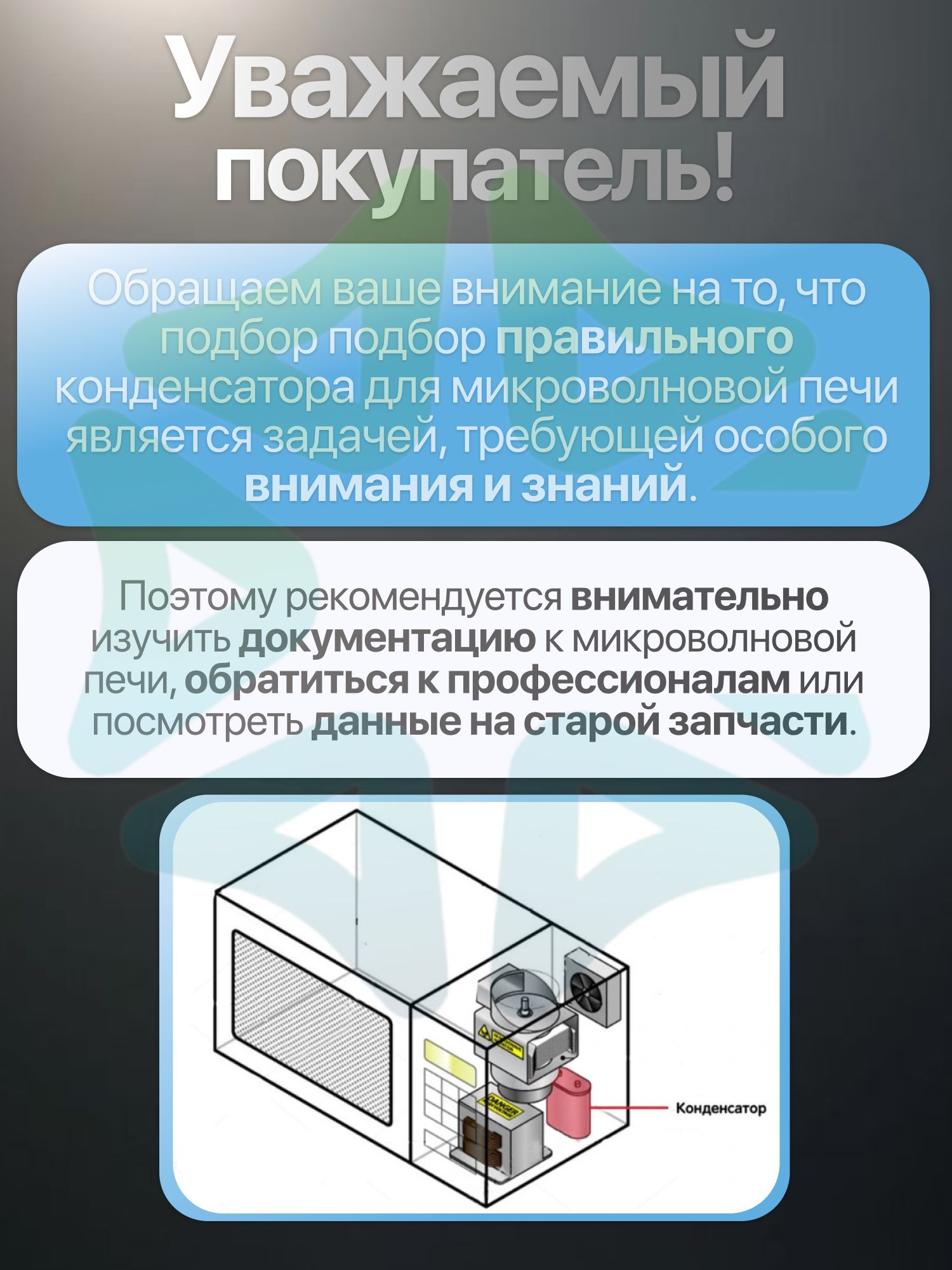 При выборе конденсатора для микроволновой печи крайне важно учитывать все параметры и спецификации, чтобы обеспечить совместимость и надежную работу устройства. Рекомендуется обратиться к документации вашей микроволновой печи, проконсультироваться со специалистом или внимательно изучить маркировку на старом конденсаторе, чтобы подобрать правильную замену и избежать возможных проблем в будущем.