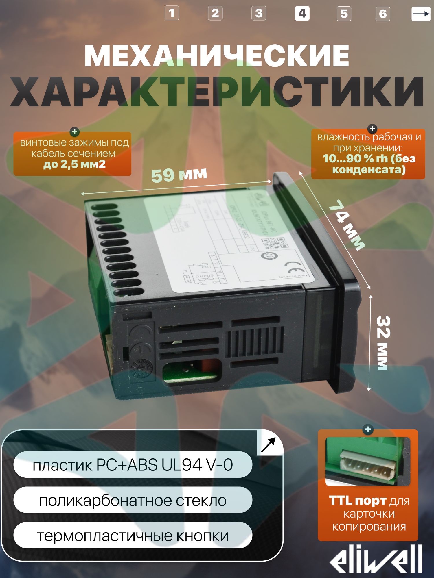 Механические характеристики: - Корпус: пластик PC+ABS UL94 V-0, поликарбонатное стекло, термопластичные кнопки;