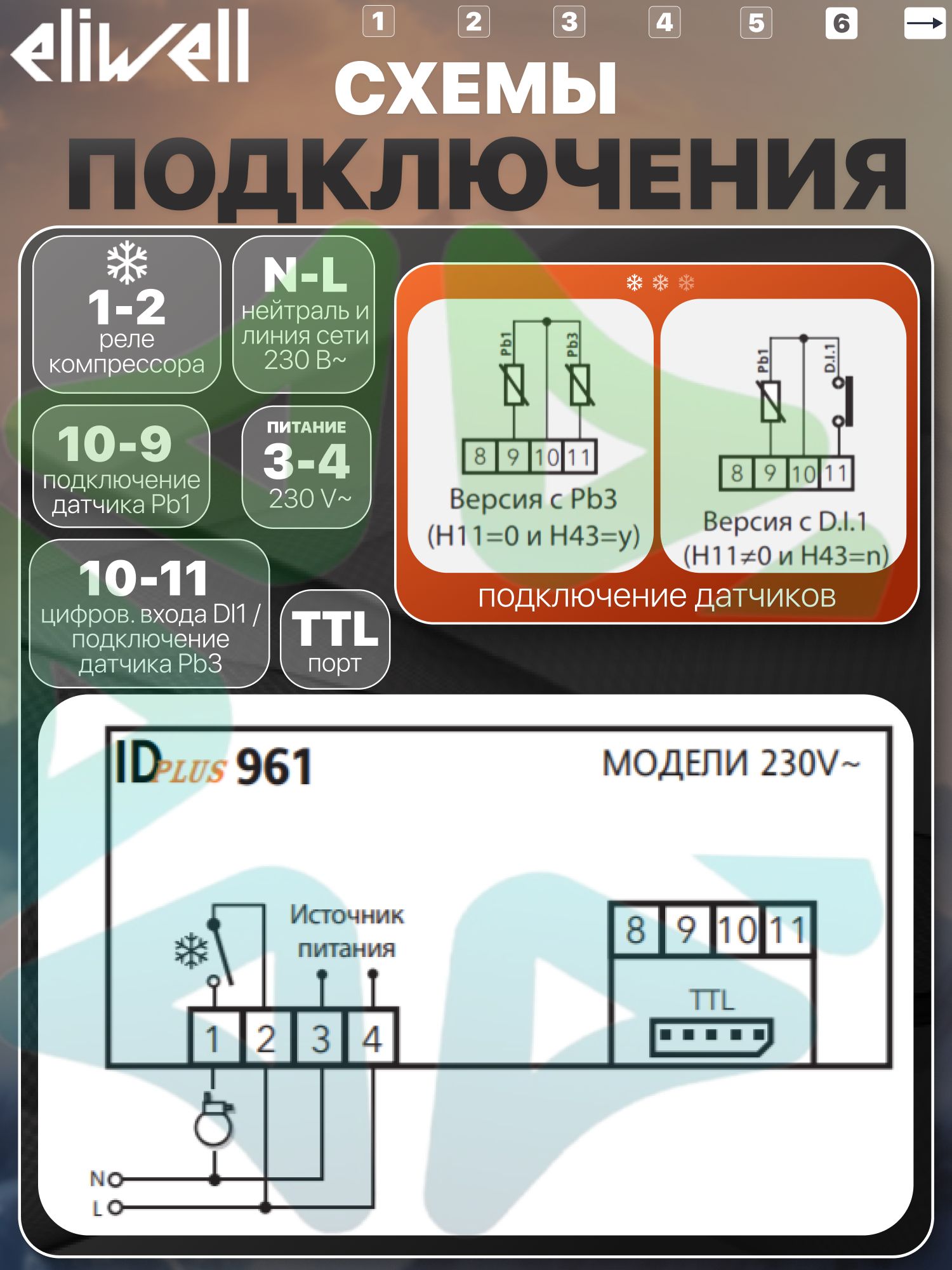(* только при использовании датчиков Eliwell)