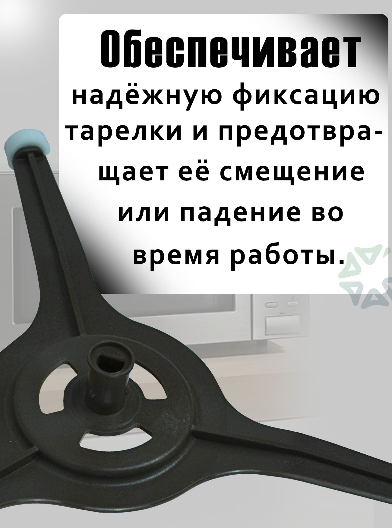 Крестовина тарелки СВЧ - это запчасть для микроволновой печи, предназначенная для установки тарелки диаметром 215 мм. Она изготовлена из качественного материала, устойчивого к высоким температурам и воздействию микроволн, подходит для большинства моделей микроволновых печей. Благодаря своей конструкции, данная крестовина равномерно распределяет тепло, обеспечивает надёжную фиксацию тарелки и предотвращает её смещение или падение во время работы печи.