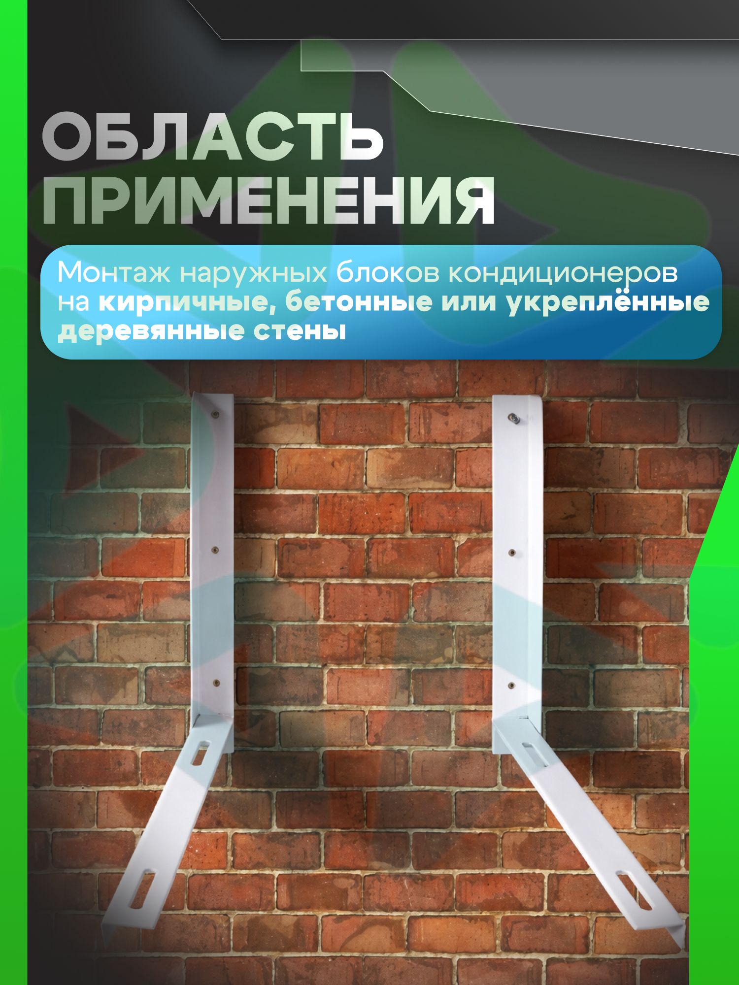 Изготовленные из высококачественной стали толщиной 2,0 мм, опоры для внешнего блока кондиционера обладают выдающейся прочностью и долговечностью. Специальное антикоррозийное покрытие не только защищает металл от ржавчины и атмосферных явлений, но и обеспечивает многолетнюю эксплуатацию без потери своих качеств. Этот комплект, состоящий из двух кронштейнов (пары), способен выдерживать нагрузку до 70 кг, что делает его универсальным решением для большинства бытовых моделей наружных блоков сплит-систем.