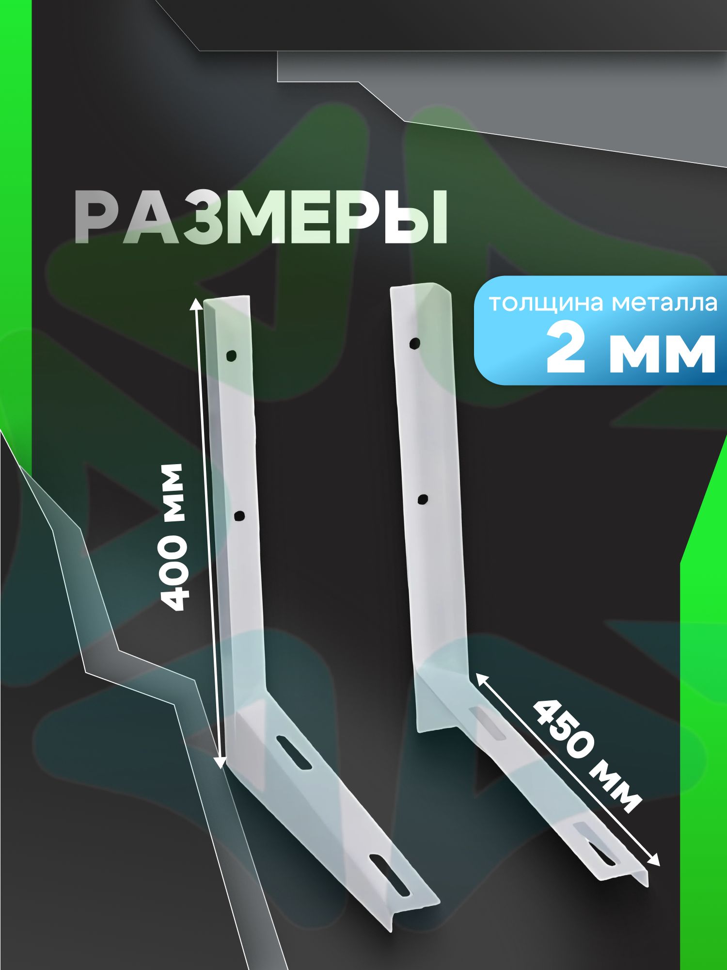 Комплект крепежных кронштейнов для кондиционера размером 400 × 450 мм (пара) разработан для обеспечения максимальной безопасности и стабильности наружного блока кондиционера. Эти кронштейны станут идеальным решением для монтажа на фасадах зданий, стенах из бетона, кирпича или даже укрепленного дерева, гарантируя устойчивую фиксацию вашей сплит-системы.