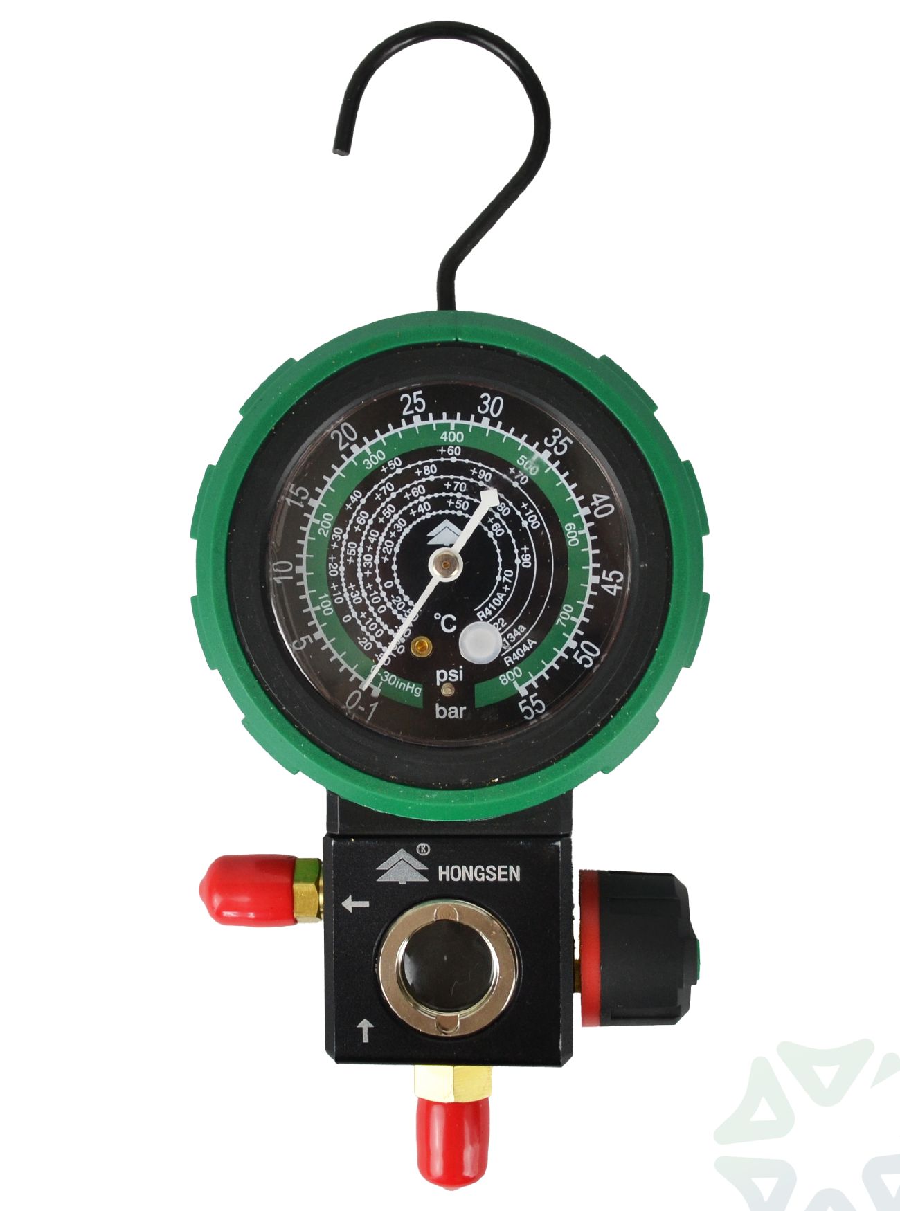 Манометрическая станция HS-M480AH от бренда Hongsen - это высокоточный инструмент, предназначенный для измерения давления и вакуума в холодильных системах, работающих на хладагентах: R404A, R134a, R22, R410A. Данная манометрическая станция представляет собой кейс, состоящий из одновентильного манометрического коллектора со стальным крюком для крепления и двух зарядных шлангов длинной по 1,5 метра. У HS-M480AH ЖК-дисплей с высоким разрешением и яркой подсветкой для четкого отображения данных даже в условиях недостаточной освещенности. Станция обладает высокой точностью измерений и широким диапазоном. Корпус станции выполнен из прочного и устойчивого к коррозии металла, обеспечивающего длительный срок службы и защиту от внешних воздействий. Она также проста в использовании и обслуживании, имеет прочный корпус и изготовлена из качественных материалов, обеспечивающих надежность и долговечность. Внутренние компоненты станции защищены специальными амортизаторами, которые эффективно гасят вибрации и предотвращают их негативное воздействие на точность измерений. HS-M480AH разработана с учетом работы в условиях повышенной вибрации, что делает её пригодной для использования на производственных линиях и в промышленных условиях.