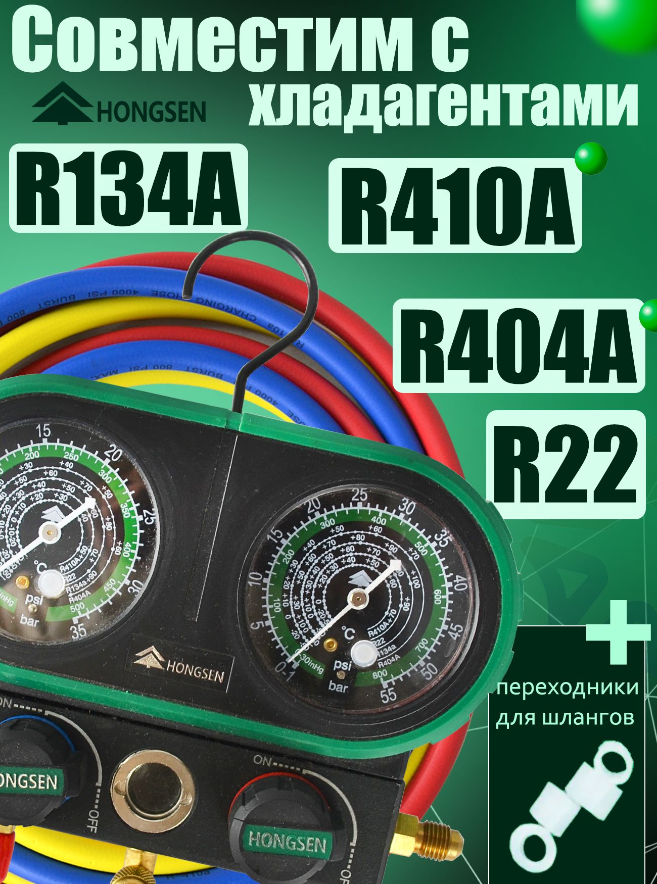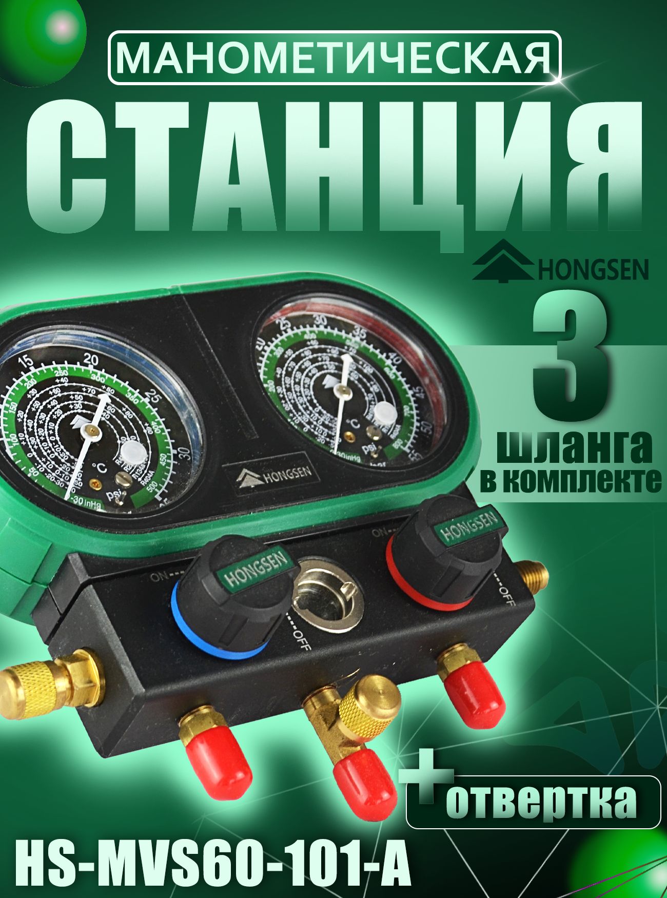 Манометрическая станция HS-MVS60-101A от бренда Hongsen - это высокоточный инструмент, предназначенный для измерения давления и вакуума в холодильных системах, работающих на хладагентах: R404A, R134a, R22, R410A. Данная манометрическая станция представляет собой кейс, состоящий из двухвентильного манометрического коллектора со стальным крюком для крепления и трёх зарядных шлангов длинной по 1,5 метра. Шкалы давления в psi и bar, в начале каждой шкалы указывается марка хладагента, для которого она предназначена. Станция обладает высокой точностью измерений и широким диапазоном. Она также проста в использовании и обслуживании, имеет прочный корпус и изготовлена из качественных материалов, обеспечивающих надежность и долговечность.