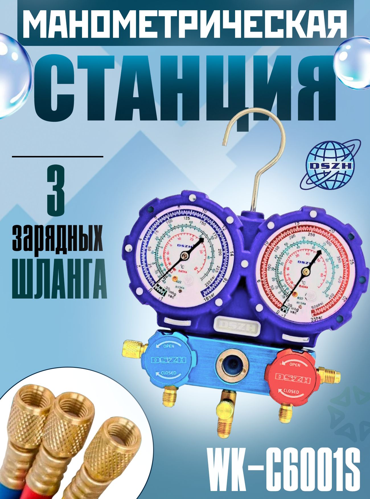 Манометрическая двухвентильная станция WK-C6001S от компании DSZH - это высокоточный инструмент, предназначенный для измерения давления и вакуума в холодильных системах, работающих на хладагентах: R134A, R22, R404a. Данная манометрическая станция представляет собой двухвентильный манометрический коллектор со стальным крюком и комплект из трех зарядных шлангов 1/4" SAE. Станция оснащена двумя манометрами: аналоговым стрелочным и цифровым а также, обладает высокой точностью измерений и широким диапазоном. Она также проста в использовании и обслуживании, имеет прочный корпус и изготовлена из качественных материалов, обеспечивающих надежность и долговечность.