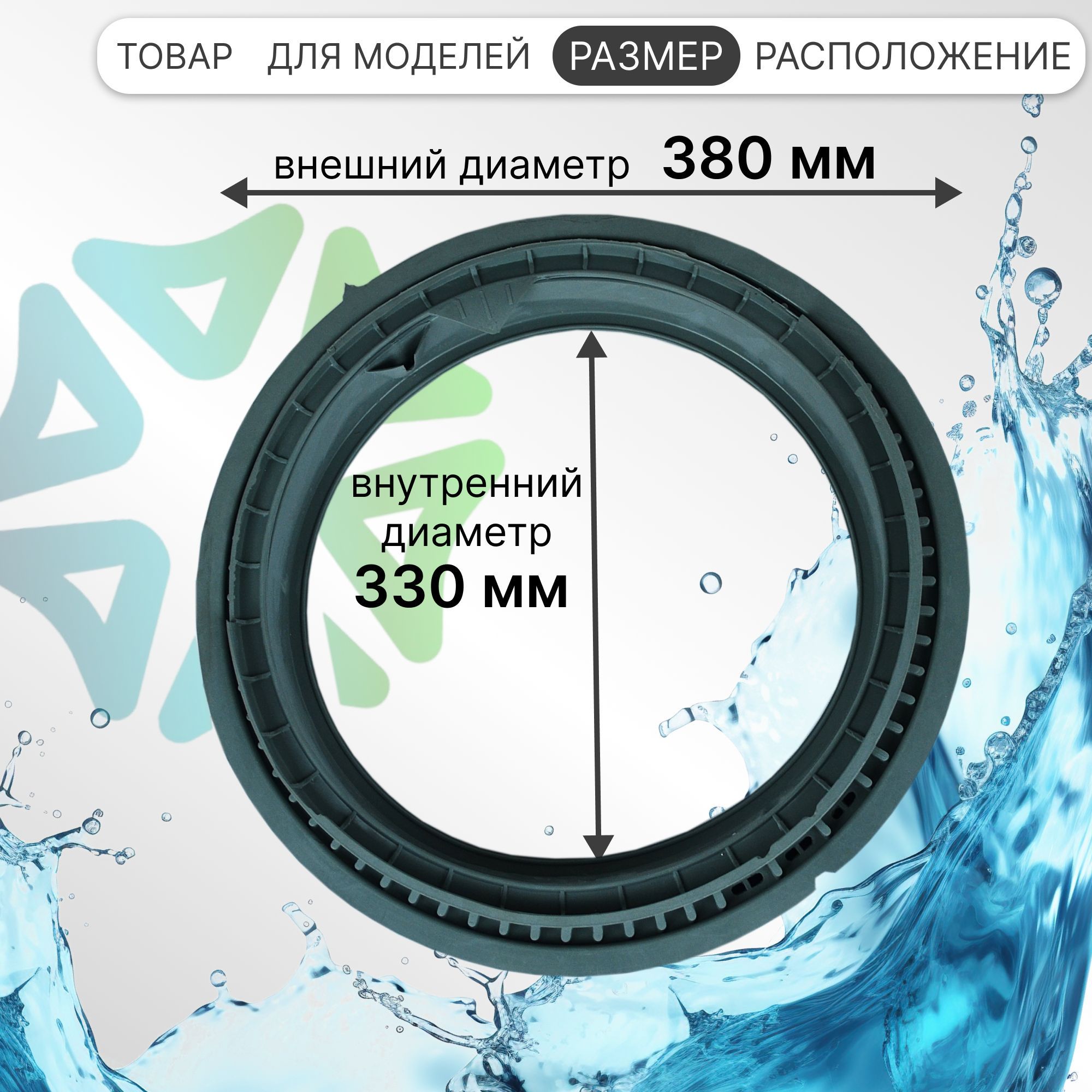 Внешний диаметр данной резиновой прокладки составляет 380 мм, а внутренний - 330 мм.