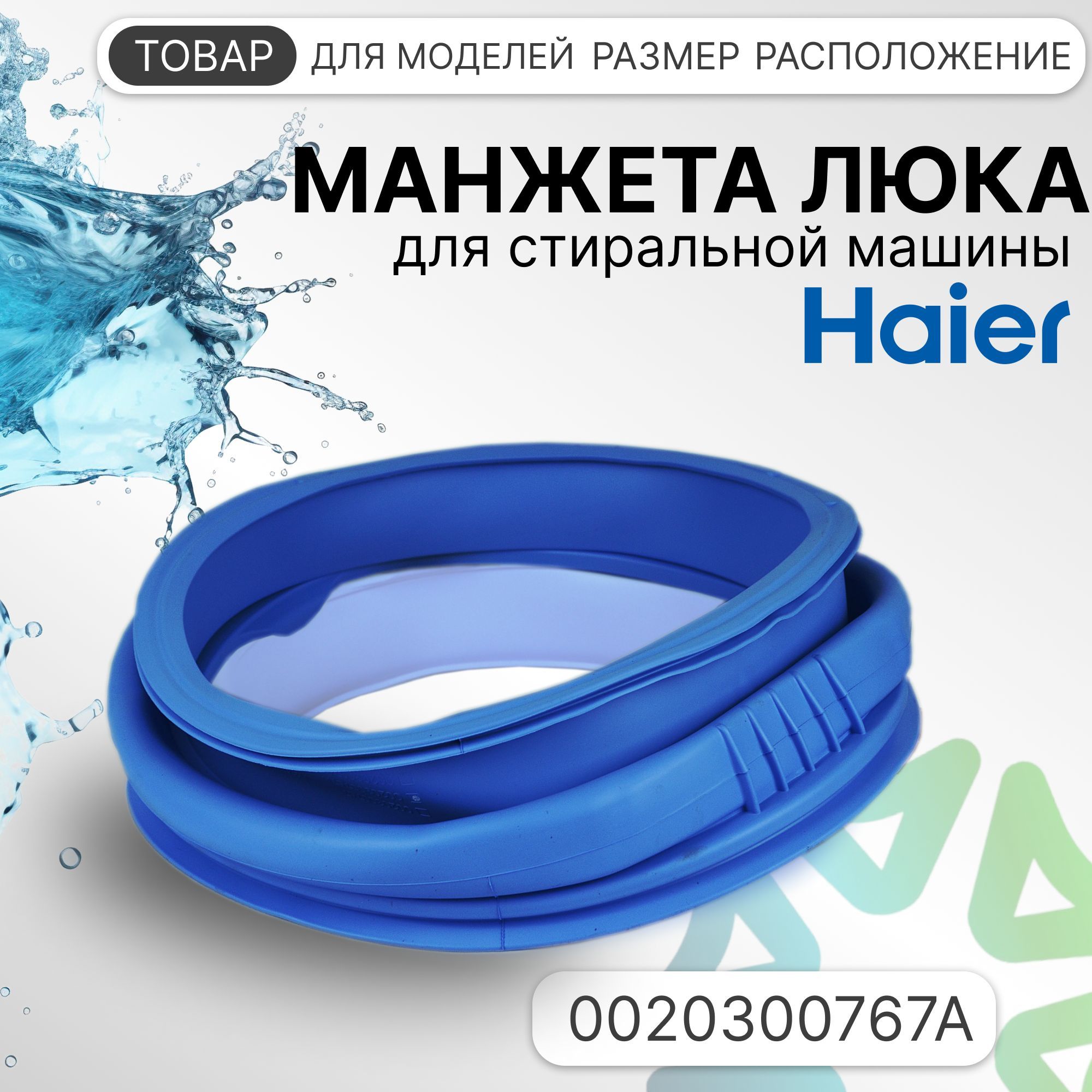 Манжета люка 0020300767A для стиральной машины Haier — это резиновый уплотнитель, который располагается между баком и передней стенкой корпуса, повторяя форму люка. Такой уплотнитель предназначен для плотного закрывания дверцы, чтобы вода не протекала наружу, а также для защиты от вибрации и предотвращения проникновения внешних элементов внутрь машины.