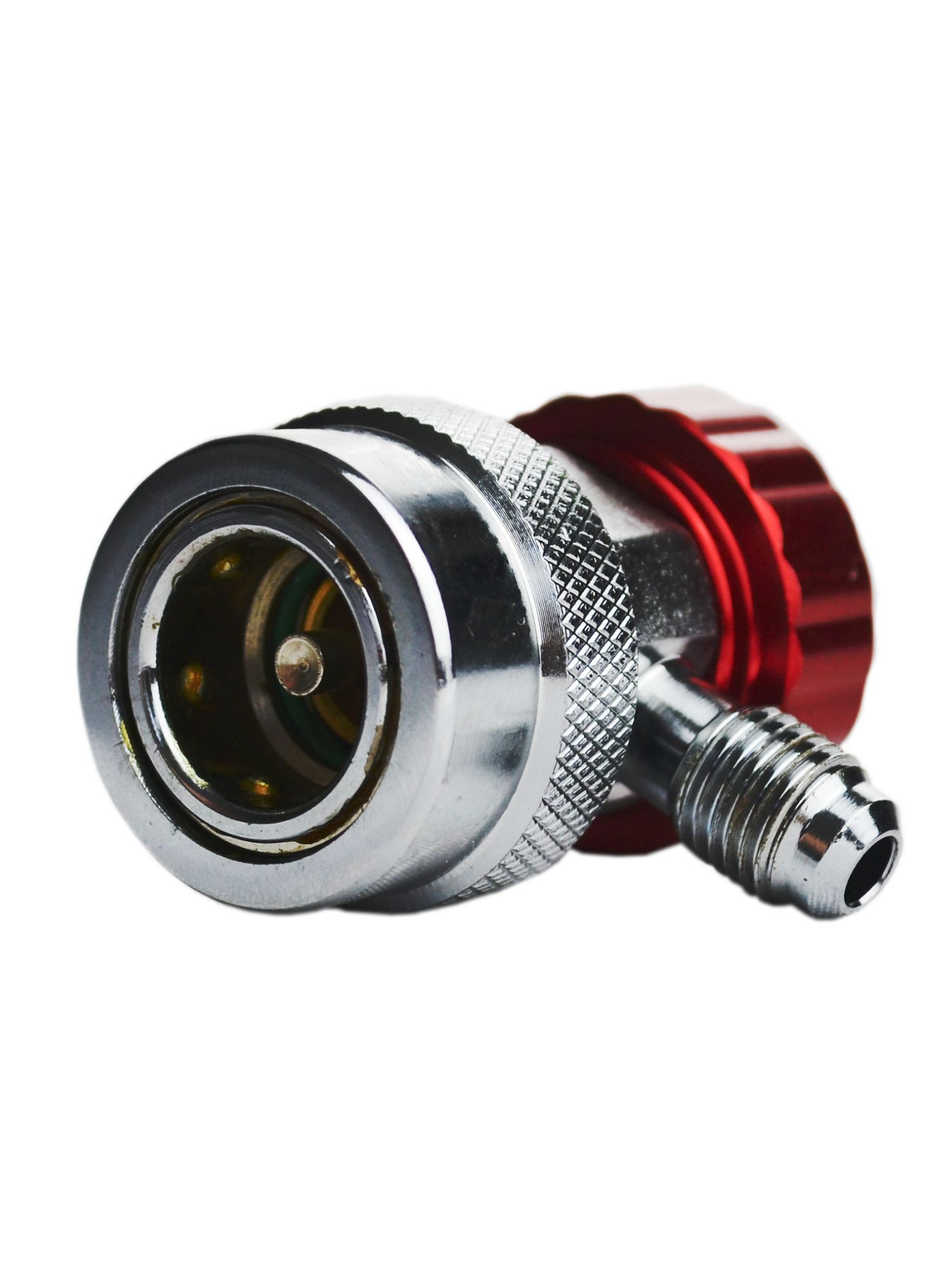 Быстросъемная муфта с вентилем высокого давления QC-18H 90° от DSZH – это незаменимый помощник для профессионалов, занимающихся обслуживанием автомобильных кондиционеров, работающих на фреоне R134a. Эта муфта высокого давления обеспечивает быстрое, надежное и герметичное соединение заправочного шланга с сервисным портом системы кондиционирования.