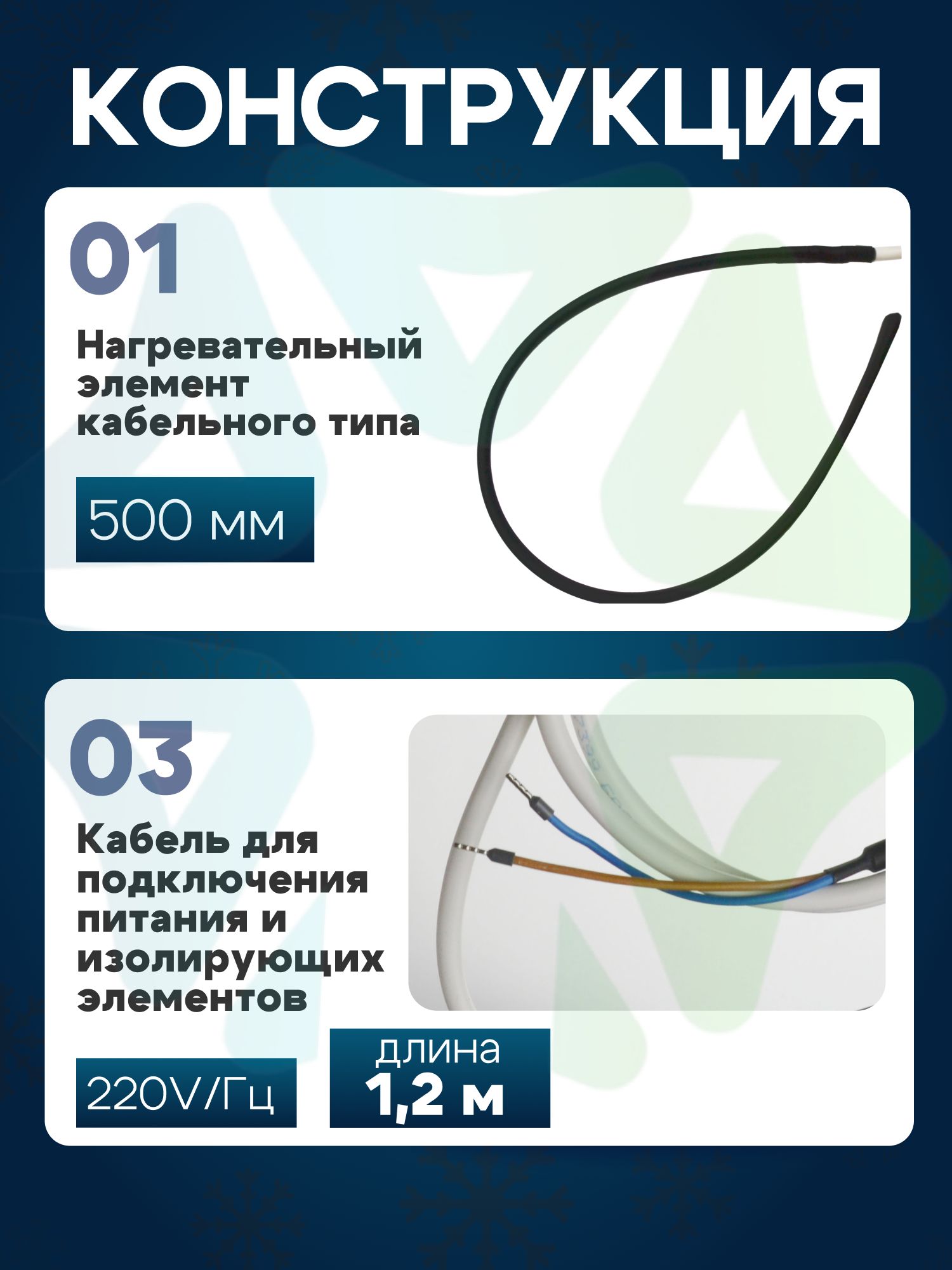 Конструктивно такой ТЭН включает в себя нагревательный кабель, кабель питания и изоляционные компоненты.