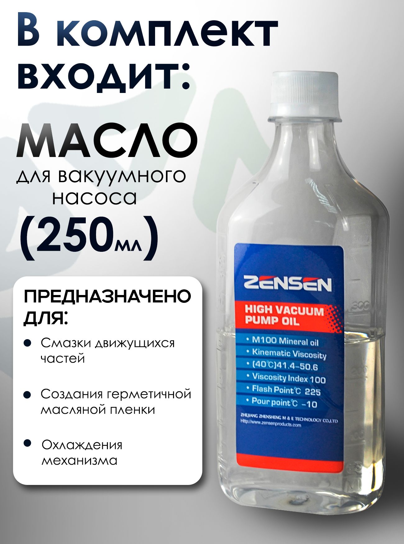 В комплект поставки входит вакуумное минеральное масло M100, обеспечивающее надежную и долговечную работу устройства.