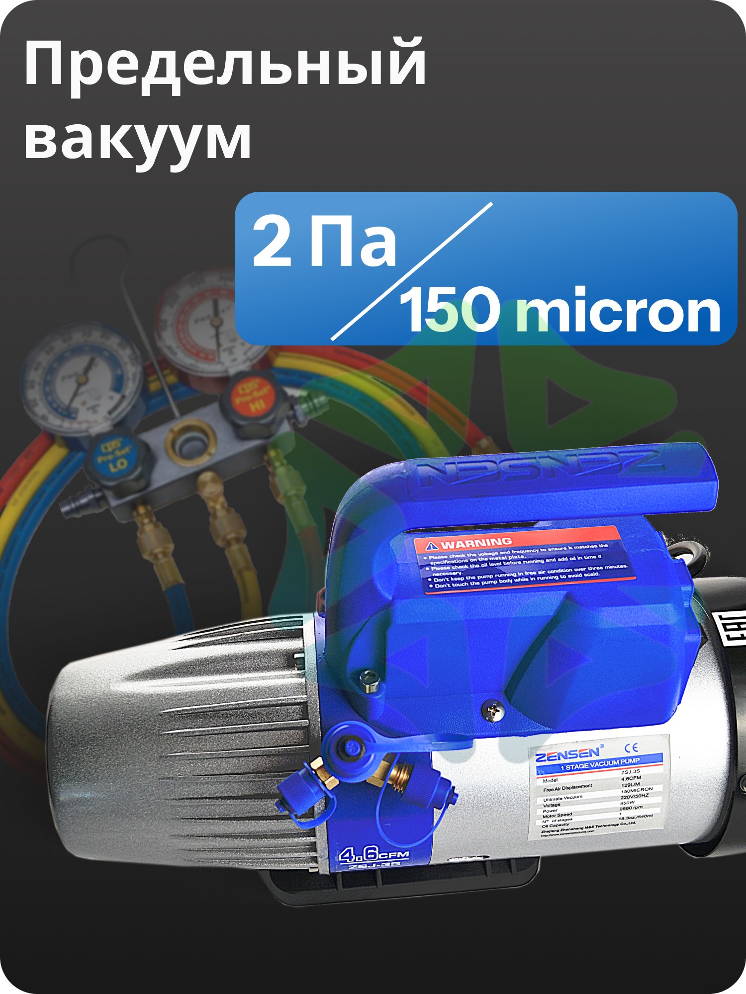 Производительность насоса составляет 129 литров в минуту ( 4.6 CFM ), что позволяет быстро и эффективно создавать необходимый уровень вакуума. Вакууматор для кондиционера оснащен мощным и надежным мотором мощностью 450 Вт, работающим со скоростью 2880 оборотов в минуту. Это обеспечивает стабильную и эффективную работу насоса при минимальном энергопотреблении. Предельный вакуум, достигаемый насосом, составляет 2/150 Па/мкр, что гарантирует высокую степень откачки воздуха и создание глубокого вакуума в системе.