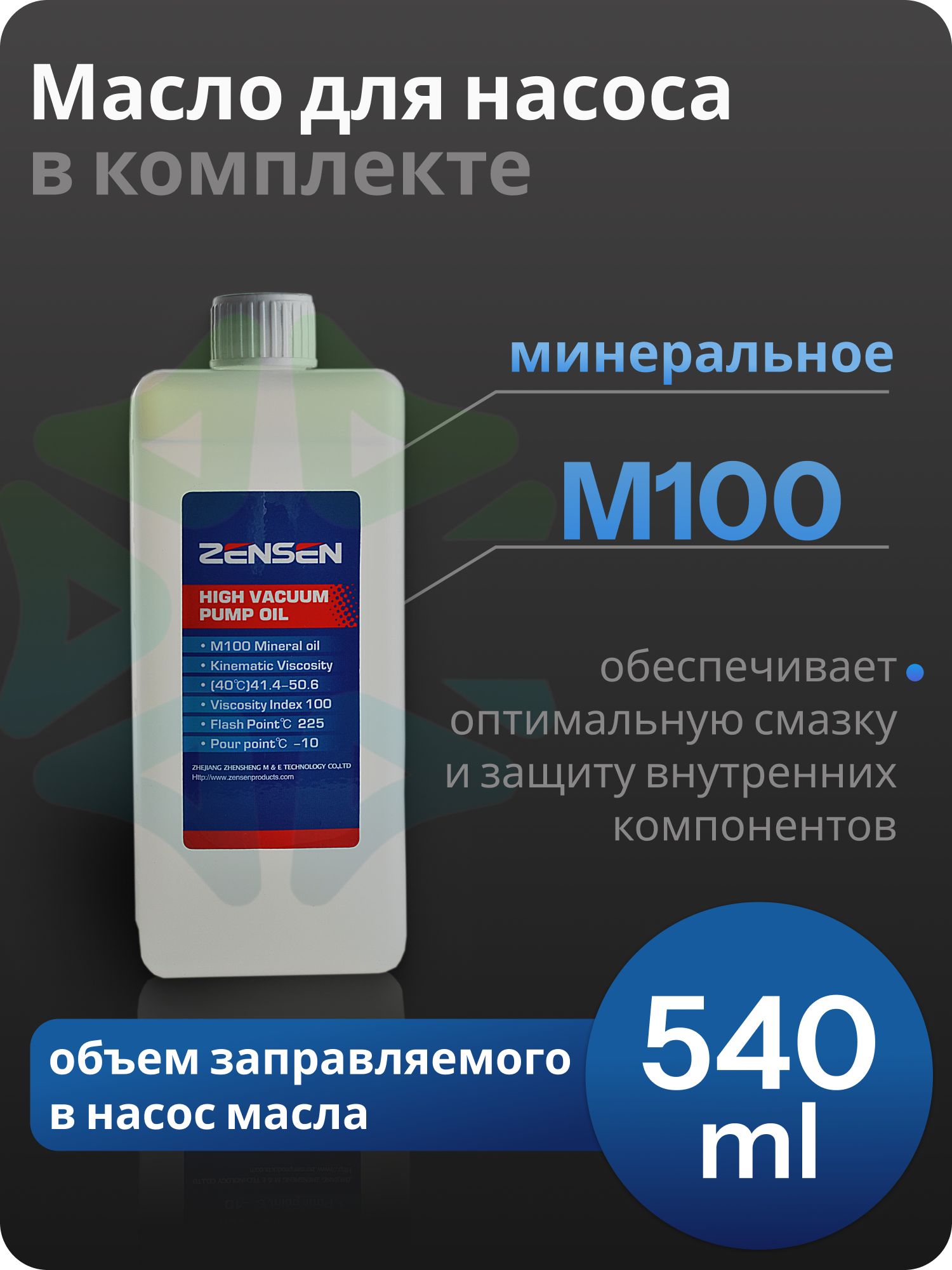 В комплект поставки входит вакуумное минеральное масло M100, обеспечивающее надежную и долговечную работу устройства.