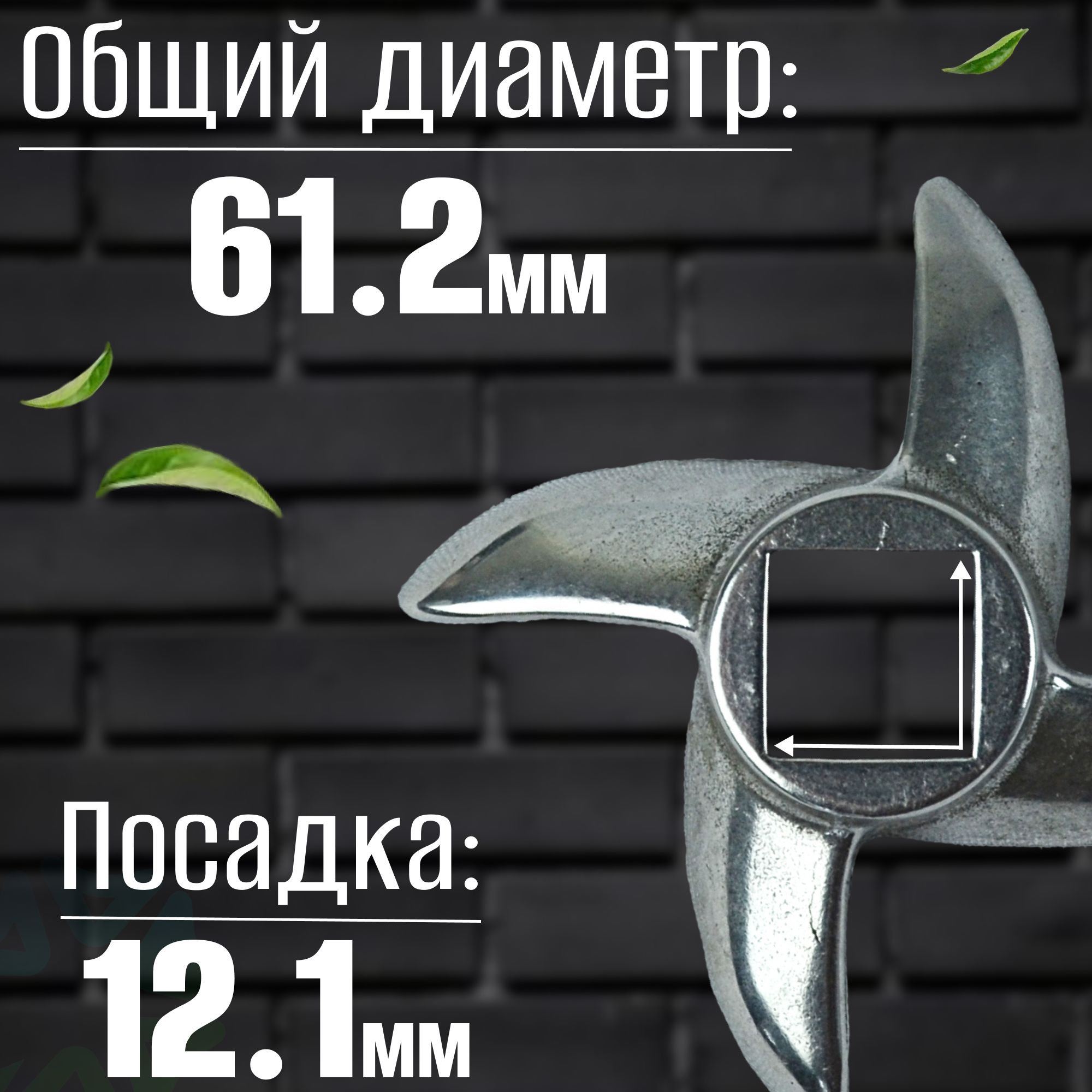 Общий диаметр данной детали составляет - 61.2 мм, а размер посадки - 12.1 мм.