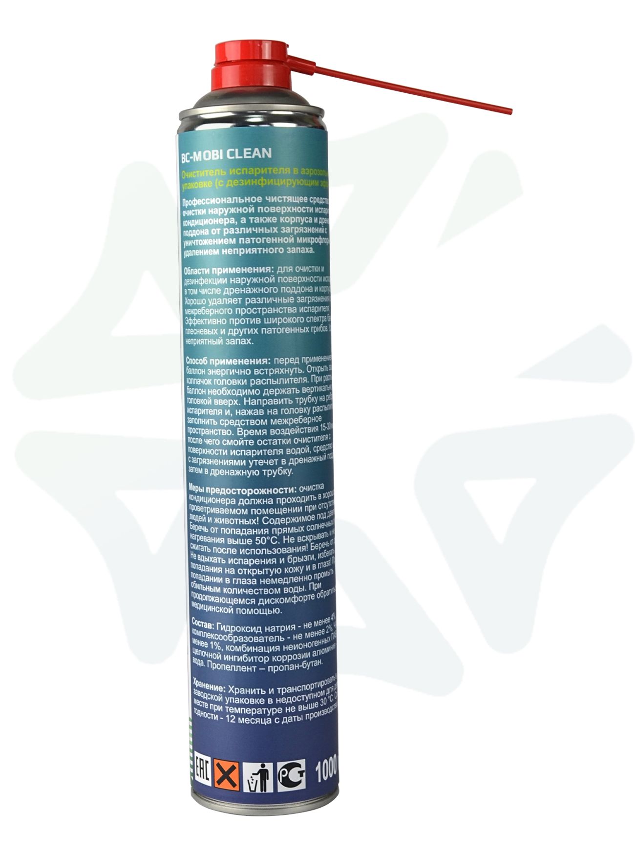Хранить баллон следует в прохладном, защищённом от солнечных лучей месте при температуре не выше 30 °C, избегая нагрева выше 50 °C. BC-MOBI CLEAN 1000 мл — это надёжное решение для профилактического и восстановительного обслуживания кондиционеров, обеспечивающее чистоту, эффективность и долгий срок службы оборудования.