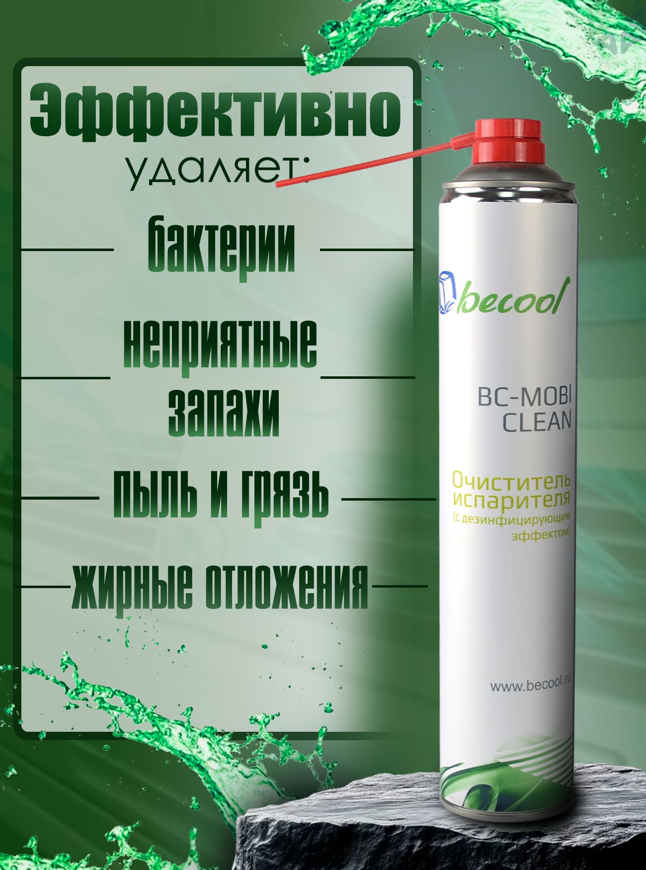 Очиститель испарителя в аэрозольной упаковке (с дезинфицирующим эффектом) BC-MOBI CLEAN от компании Becool - надежный помощник в поддержании идеальной чистоты наружной поверхности и межреберного пространства испарителя кондиционеров, в том числе дренажного поддона и корпуса.