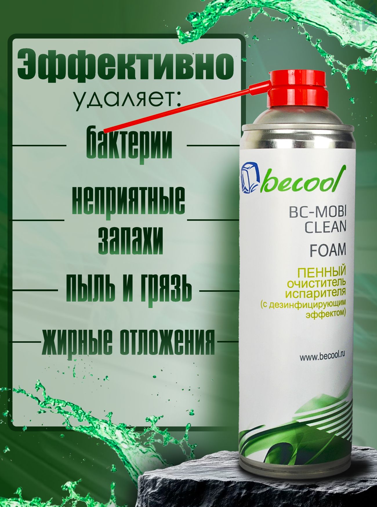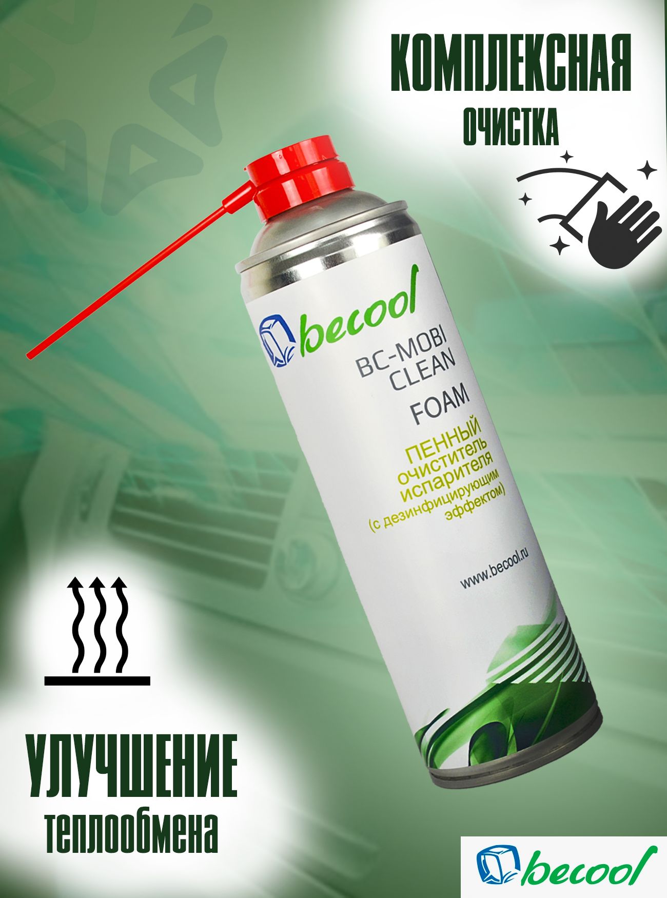 Средство для очистки кондиционеров BC-MOBI CLEAN FOAM от компании becool- это высокоэффективный продукт, предназначенный для удаления загрязнений с кондиционеров. Благодаря уникальной формуле с активными компонентами, BC-MOBI CLEAN FOAM глубоко проникает в структуру загрязнений, обеспечивая максимальную чистоту и безопасность эксплуатации. Данное средство направлено на эффективное удаление накопившихся загрязнений, уничтожение плесени и грибковых образований, истребление бактериальной микрофлоры и очистку труднодоступных участков системы. После обработки очиститель создает на поверхностях защитный слой, который не только препятствует накоплению новых загрязнений, но и улучшает теплообмен, что положительно сказывается на работе всего климатического оборудования.