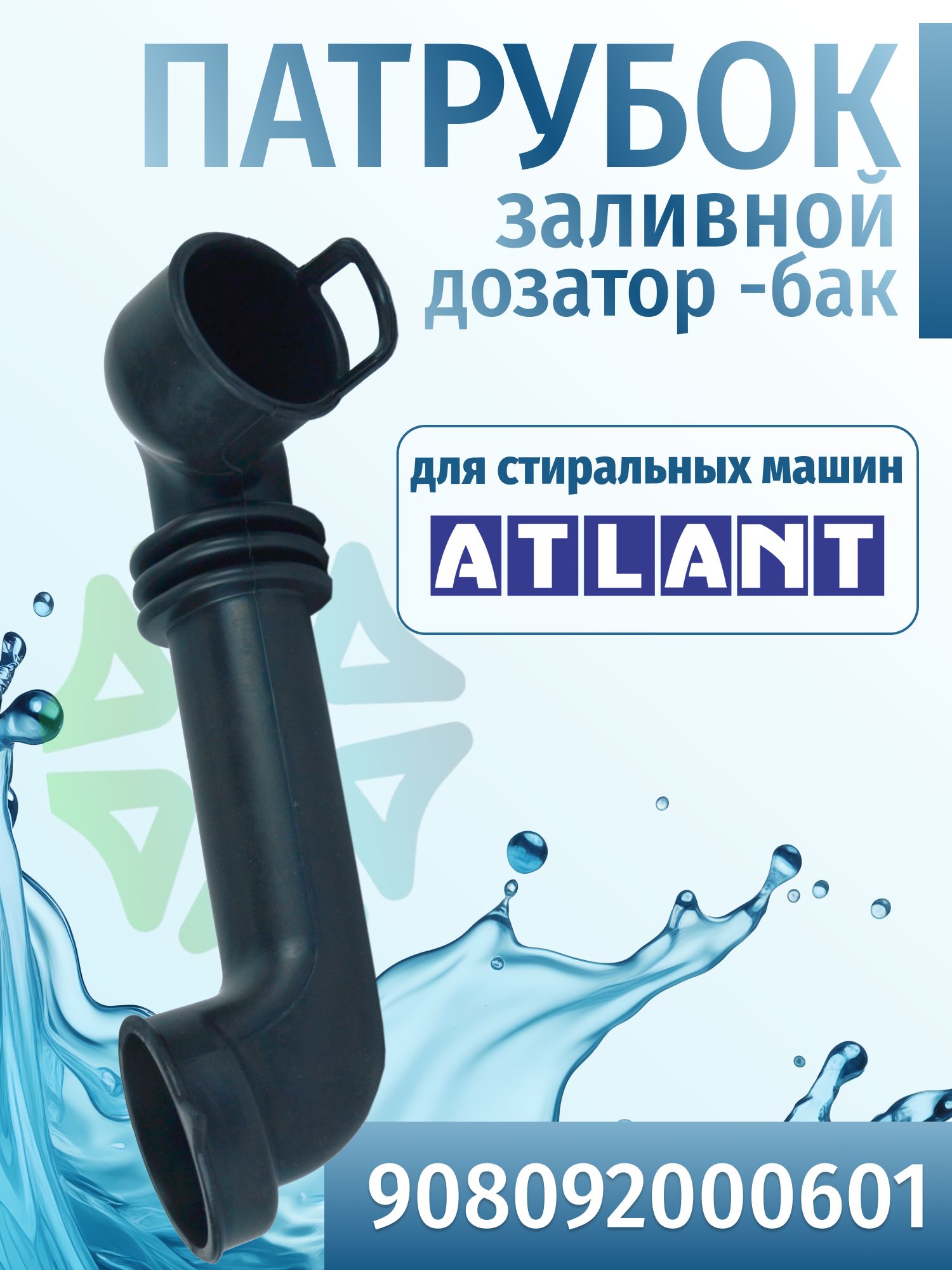 Патрубок заливной 908092000601 - это гофрированная резиновая труба в стиральной машине, которая соединяет бак с дозатором. Данная запчасть подойдет к стиральным машинам марки Атлант. Патрубок без юбки и поставляется без шарика. Оригинальный код : 908092000601 . Код аналога : 775252400200 . Маркировка на патрубке : MKAY.752524.002 ( MKAY752524002 ) . Диаметр выходов: 55 мм и 47 мм.