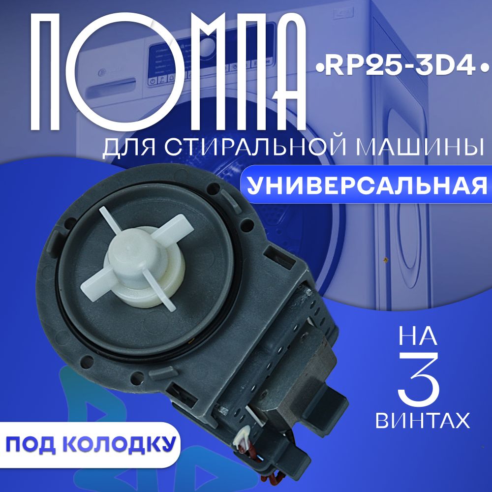 Сливной насос (помпа) - это запчасть для стиральной машины, которая отвечает за слив воды, и задействована в любом цикле: стирка, полоскание, отжим, сушка или слив. Данная помпа RP25-3D4 под колодку для стиральной машины является универсальной.