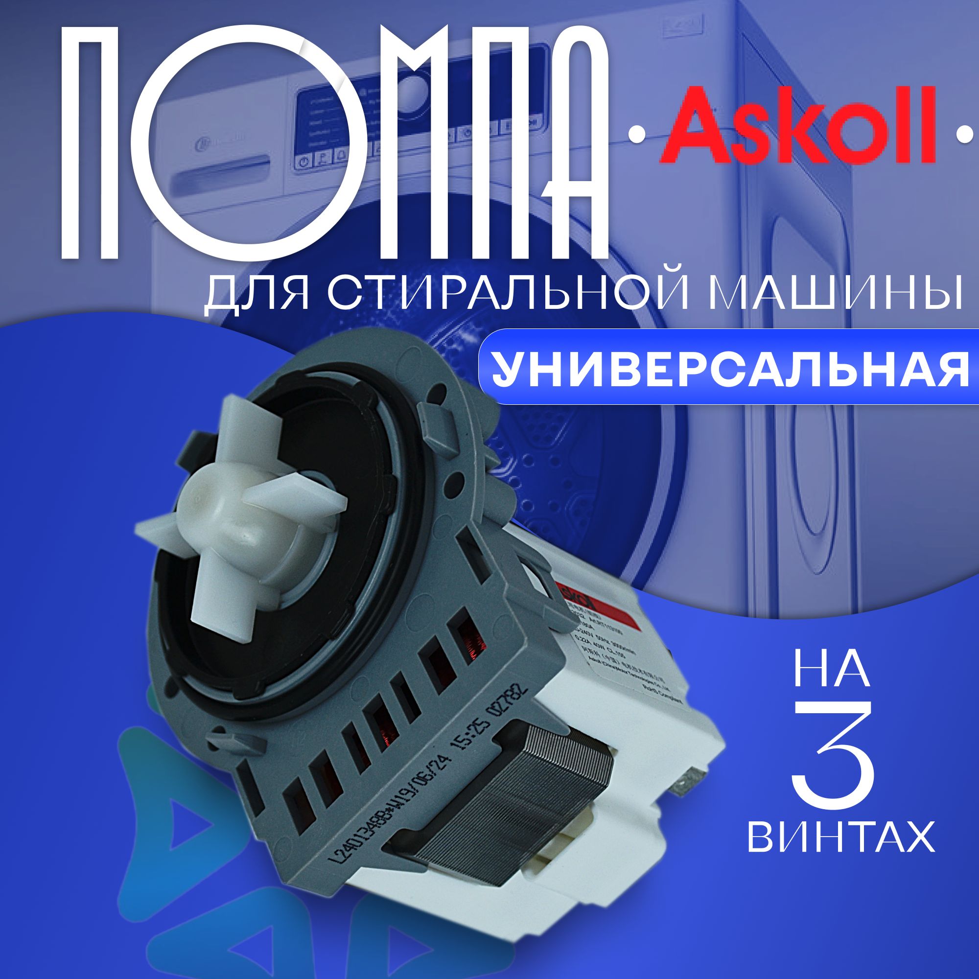 Сливной насос (помпа) - это запчасть для стиральной машины, которая отвечает за слив воды, и задействована в любом цикле: стирка, полоскание, отжим, сушка или слив. Данная помпа Askoll для стиральной машины является универсальной.